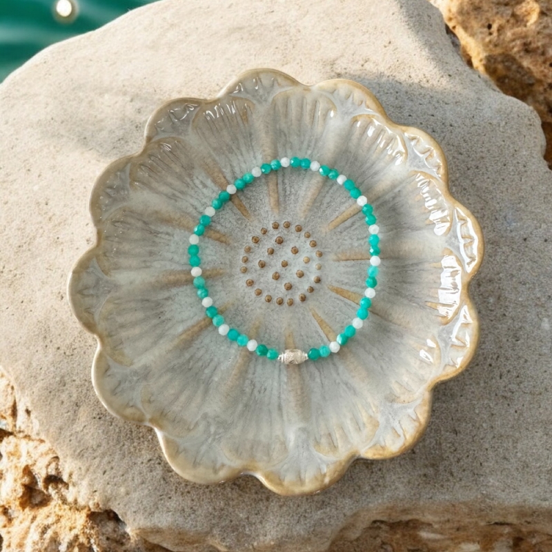 Cumpara acum bratara din cristale si lasa-te purtata de valurile elegante ale amazonitului si pietrei lunii. Fii tu cea care straluceste prin armonie si frumusete naturala, purtand un accesoriu deosebit ce reflecta magia si serenitatea marii.
