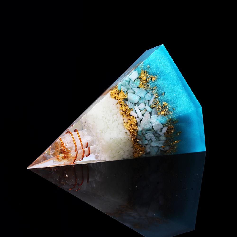 3. Bunastare emotionala: Amazonitul este cunoscut pentru capacitatea sa de a promova echilibrul emotional si vindecarea. Calmeaza emotiile, reducand stresul, anxietatea si ingrijorarea. A avea o piramida orgonit din cristal de Amazonit in mediul tau poate crea o atmosfera linistita, sustinand bunastarea emotionala si oferind un sanctuar pentru relaxare si auto-reflectie.