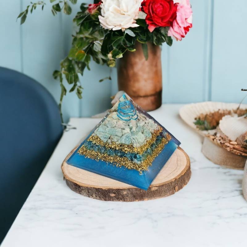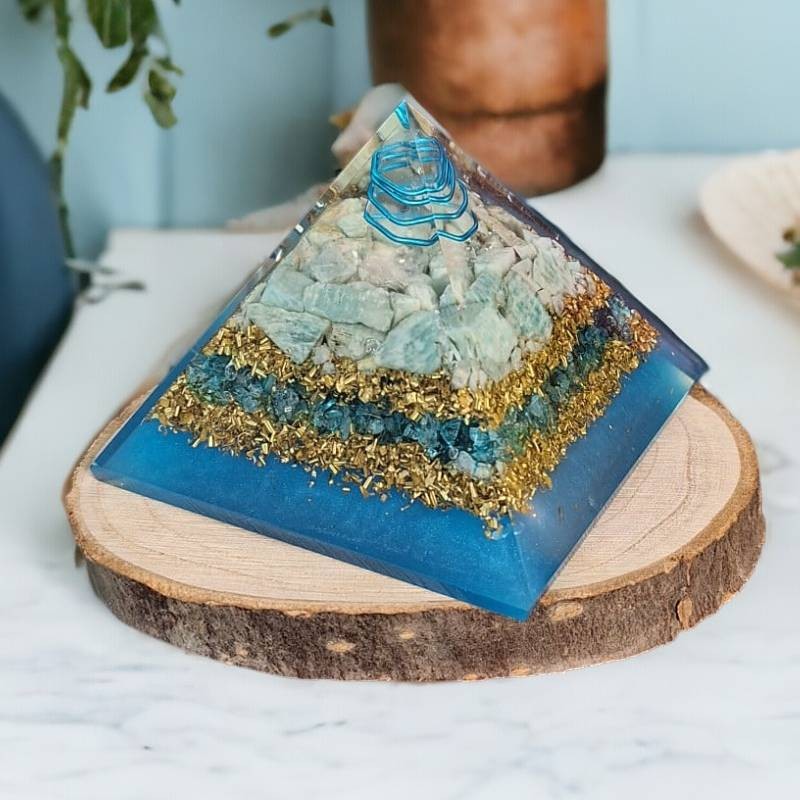 Piramida este realizata folosind tehnologia orgonitelor, un amestec de rasina, aschii de metal si cristale. Se crede ca aceasta combinatie unica transforma energia stagnanta sau negativa in energie vitala pozitiva, promovand un mediu sanatos si vibrant.