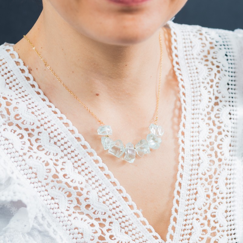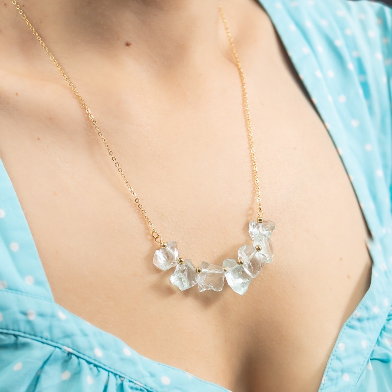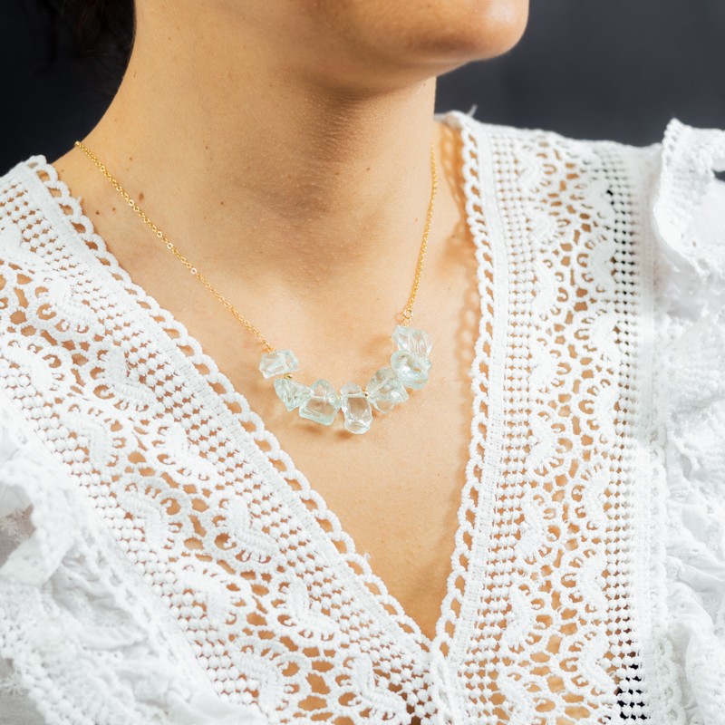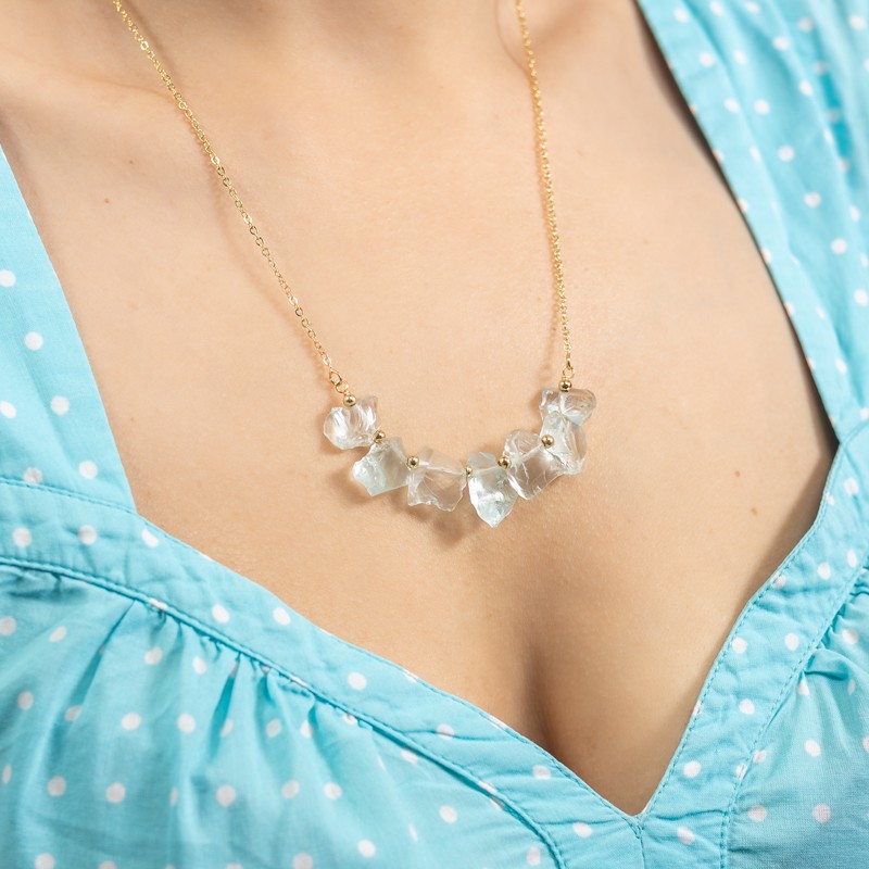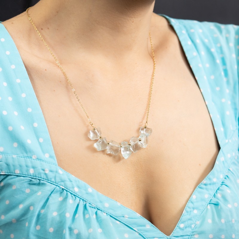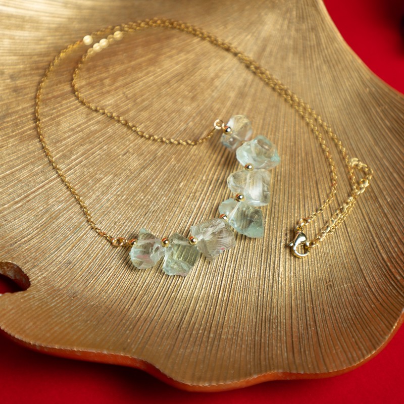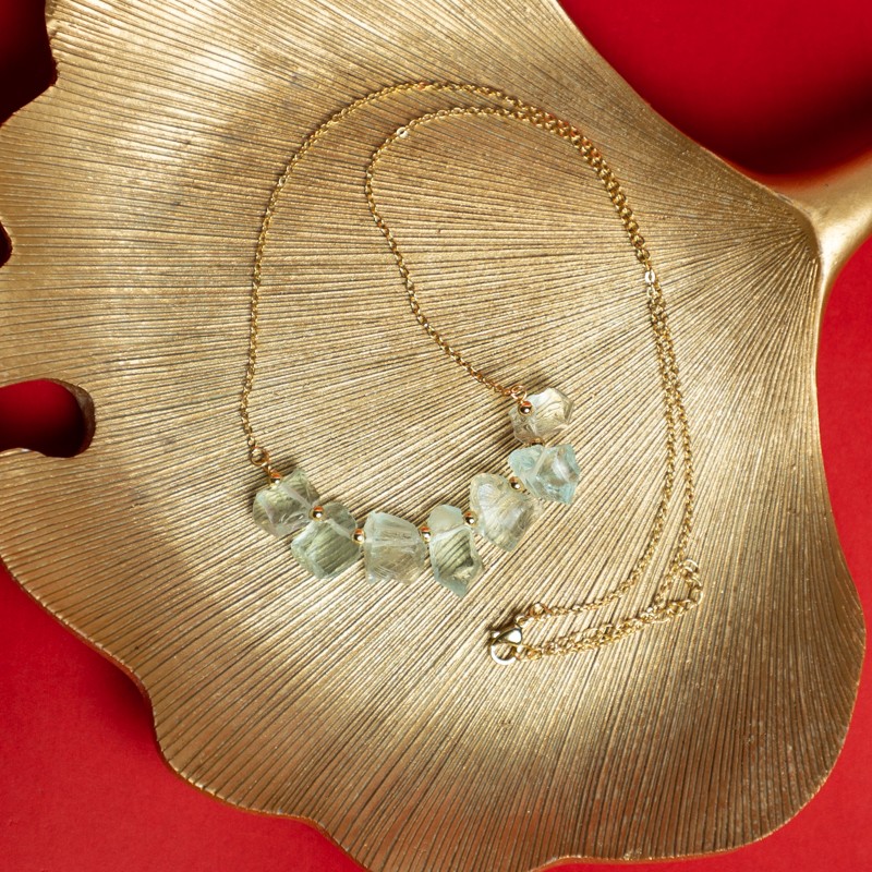 Mali, colier cu pietre brute neregulate, cristale de Apatit, placat cu aur de 18K
