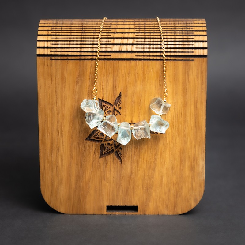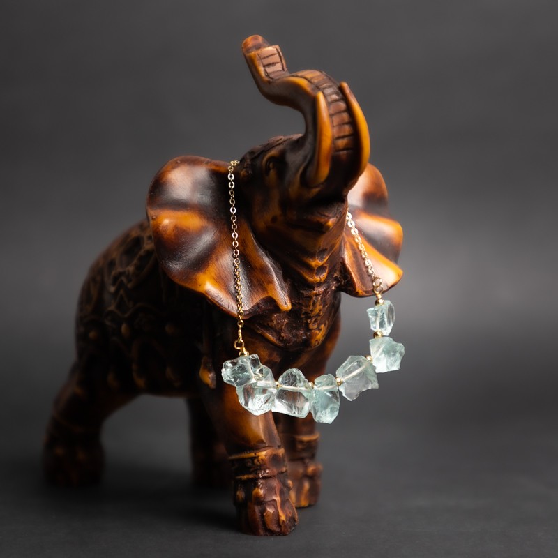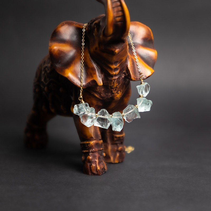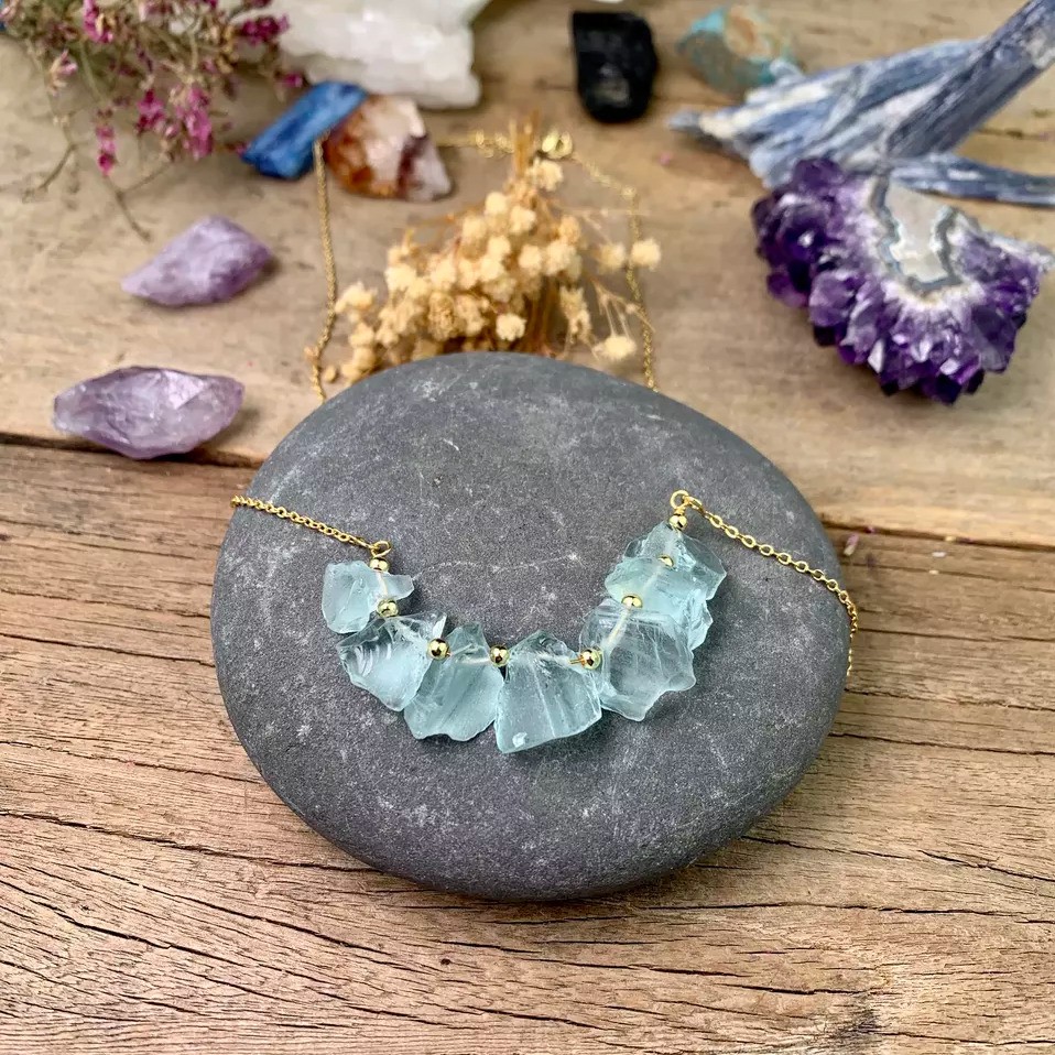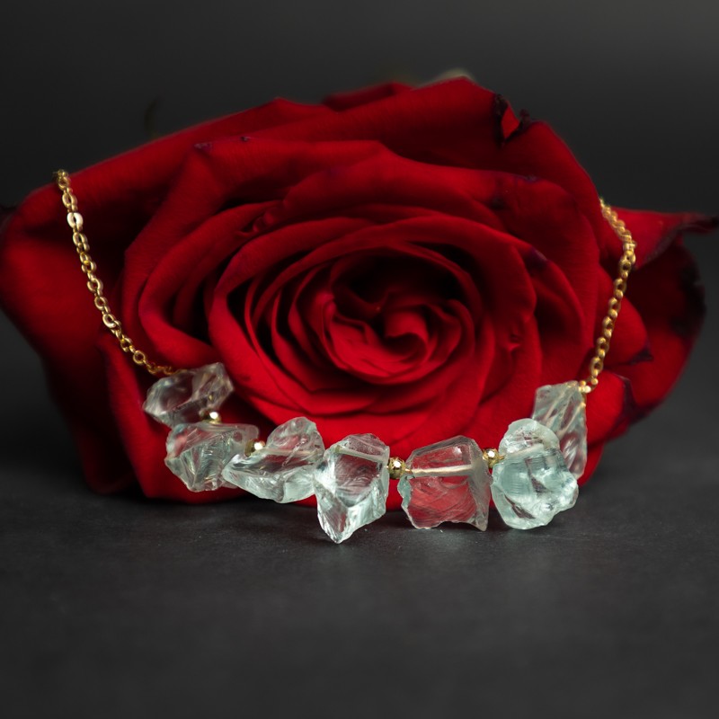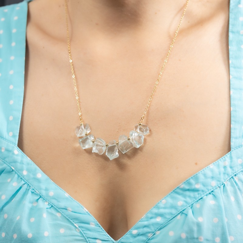 Mali, colier cu pietre brute neregulate, cristale de Apatit, placat cu aur de 18K