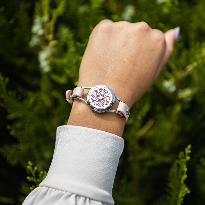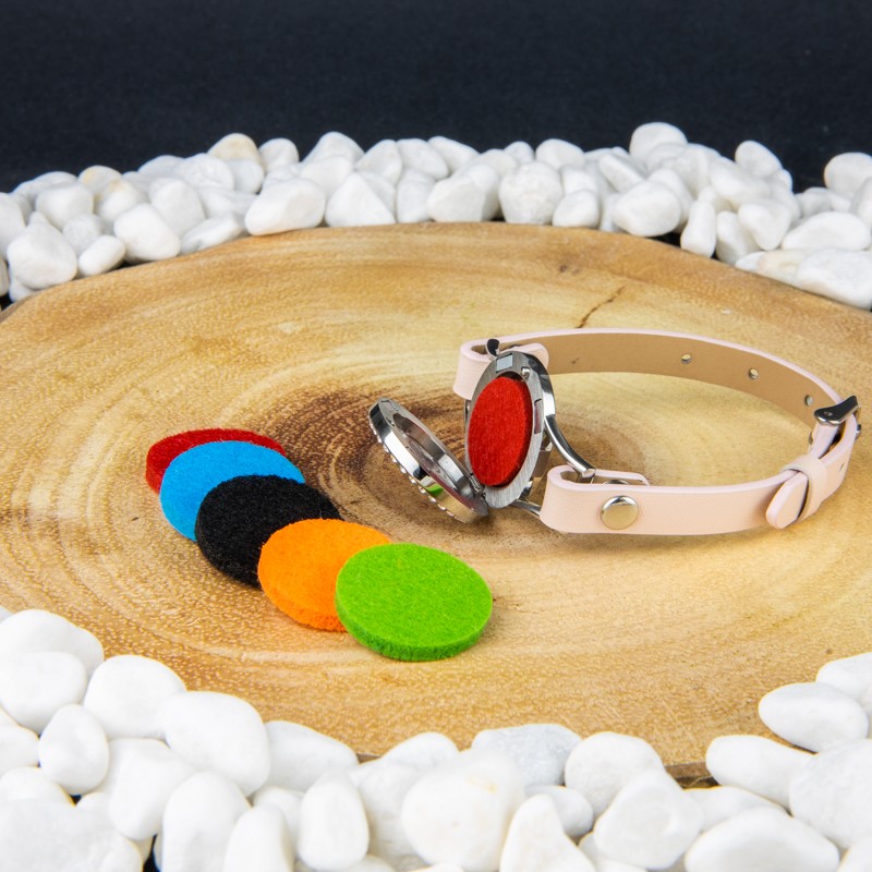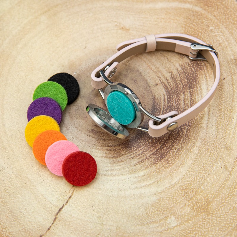 Bratara este foarte usor de utilizat! Se deschide pe una din laturile sale, se introduce unul dintre cele 7 discuri de pasla fetru, se pun 1-3 picaturi de ulei esential pe material si apoi se inchide magnetic. In functie de uleiul pe care il alegi, te vei putea bucura de aroma lui placuta pentru minim 12 - 24 ore.