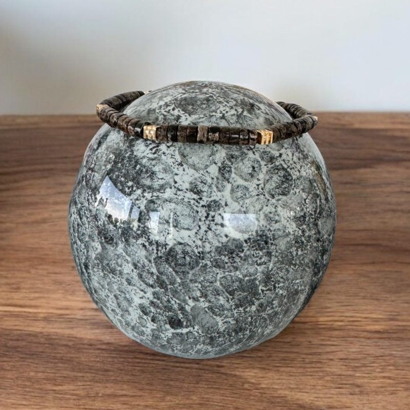 Bratara Kunal imbina textura naturala a Jaspului Negru cu accentele calde ale cuprului aurit, oferind un look sofisticat, dar discret. Este perfecta pentru a completa o tinuta relaxata de zi cu zi, aducand un element subtil de rafinament. Fie ca o porti la o pereche de jeans si un tricou simplu, sau alaturi de o camasa casual, aceasta bratara iti confera un aer cool si echilibrat.