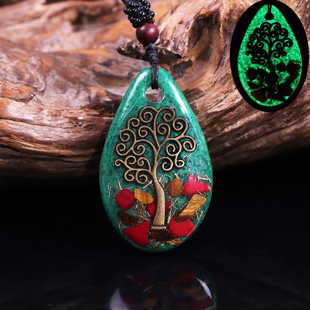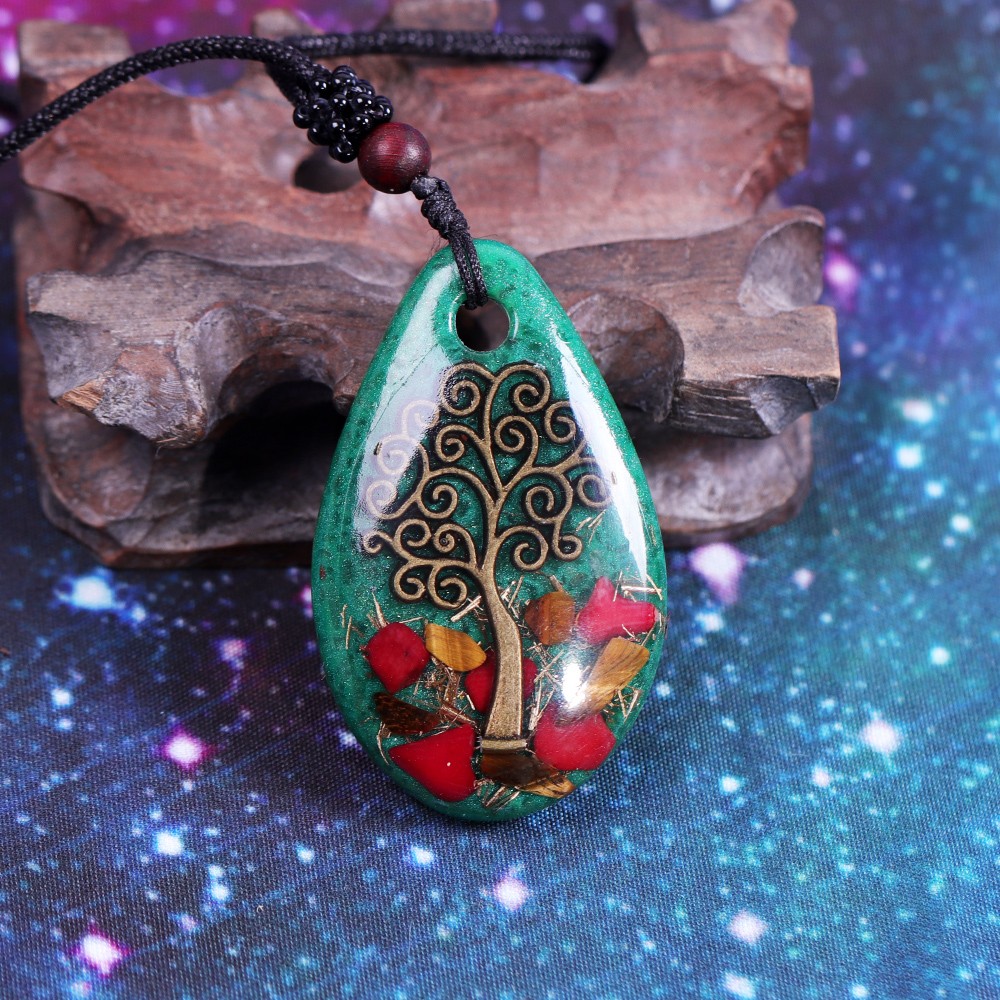 Pandantiv orgonic luminos Darsh, cu Copacul Vietii cu Ochi de Tigru, Coral Rosu