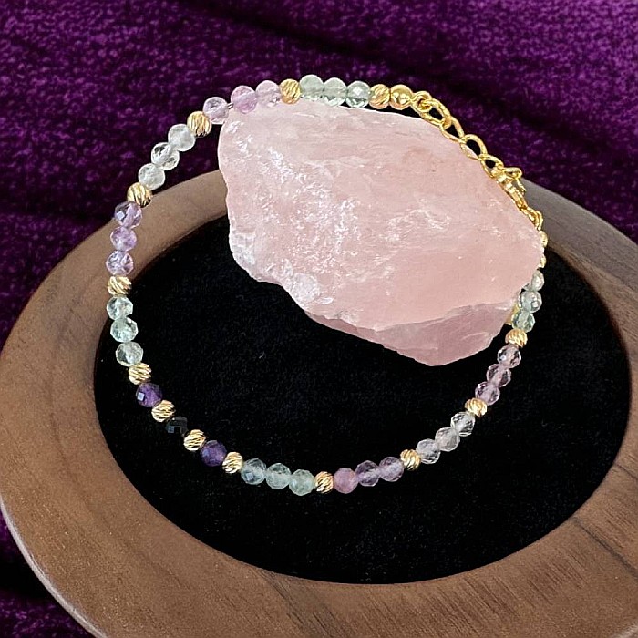 Fluoritul, cu nuantele sale incantatoare si modelele sale fascinante, ne indeamna sa ne exploram profunzimile emotiilor si sa imbratisam puterea transformatoare a energiei sale. Acest cristal extraordinar, celebrat pentru capacitatea sa de a spori intuitia, de a promova vindecarea emotionala si de a promova claritatea mentala, a fost pretuit de mult timp de catre cei care cauta bunastare emotionala. Pe masura ce imbratisezi frumusetea bijuteriilor din cristal de fluorit, ii inviti energia incantatoare sa-ti infuzeze spiritul, ghidandu-te intr-o explorare emotionala profunda si dandu-ti putere cu o noua intelepciune.