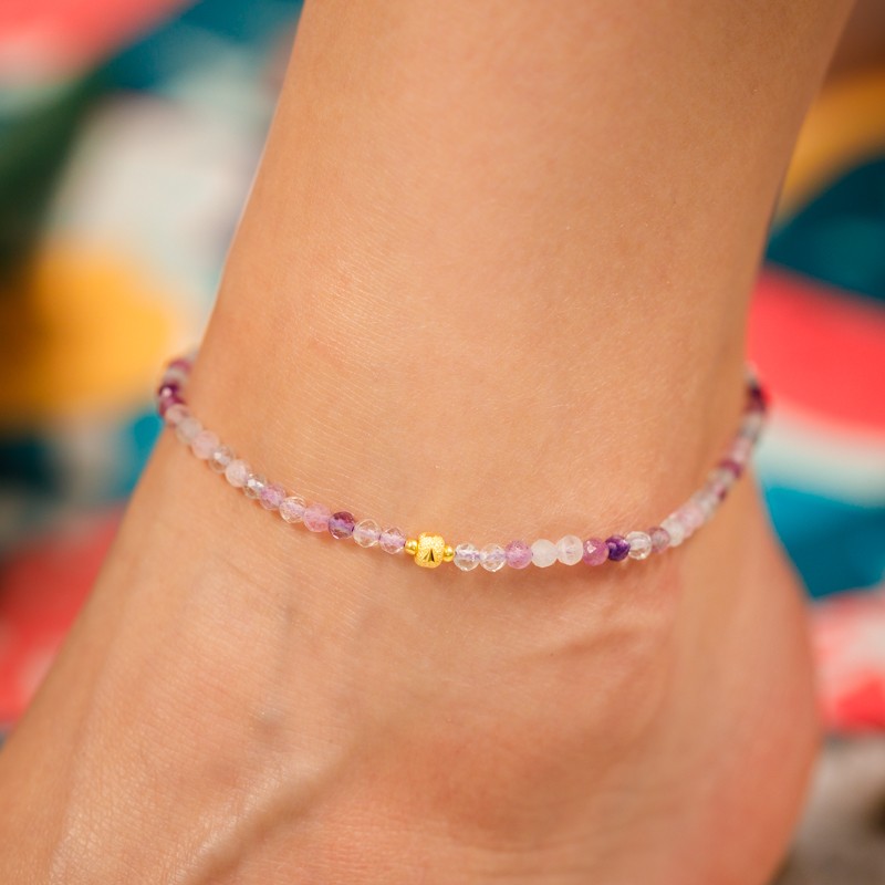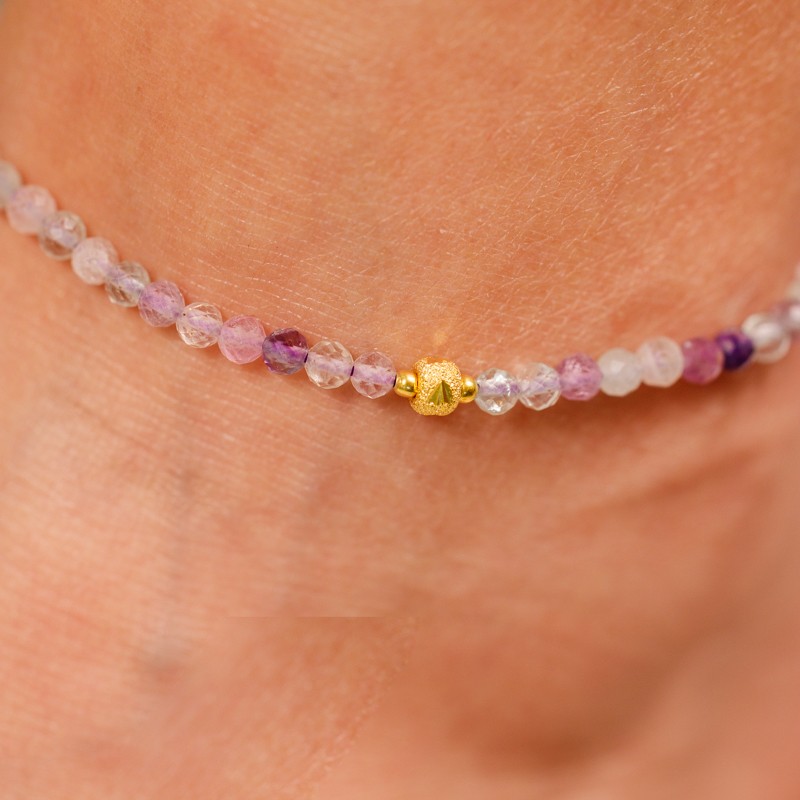 Fluoritul, cunoscut sub numele de „piatra de geniu” si „piatra discernamantului”, se crede ca sporeste claritatea mentala si concentrarea. Cand este purtata, bratara pentru picior, creeaza un flux armonios de energie in corpul tau, ajutandu-te sa iei decizii informate, sa navighezi in provocarile vietii si sa-ti manifesti aspiratiile cu claritate si precizie.