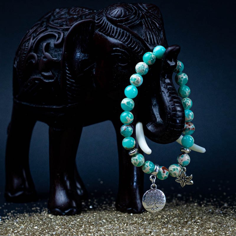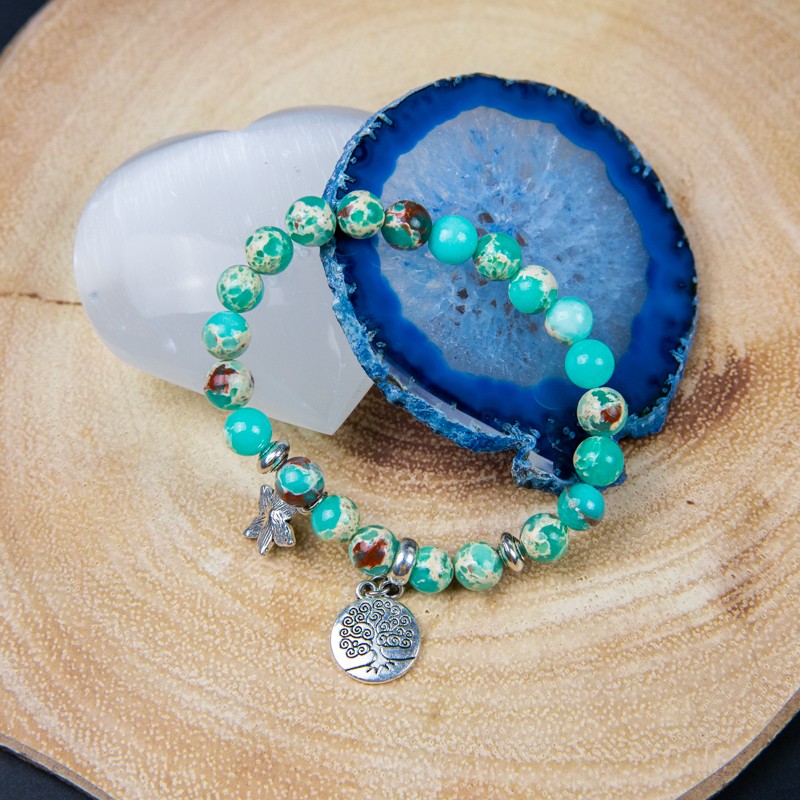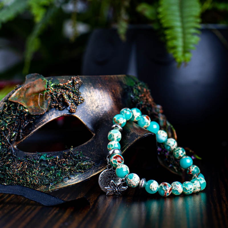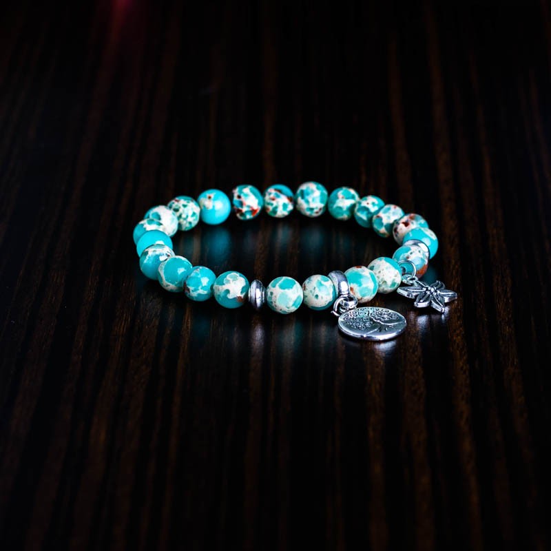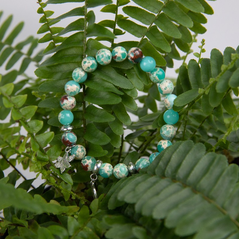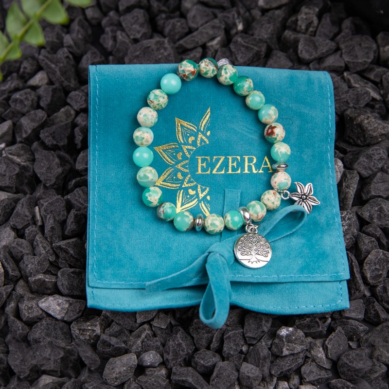 Esti in cautarea unei bratari in nuantele albastrului marin? Te vei indragosti de bratara „FEROZA”, un accesoriu deosebit prin coloristica si frumusetea pietrelor naturale de Jasp.