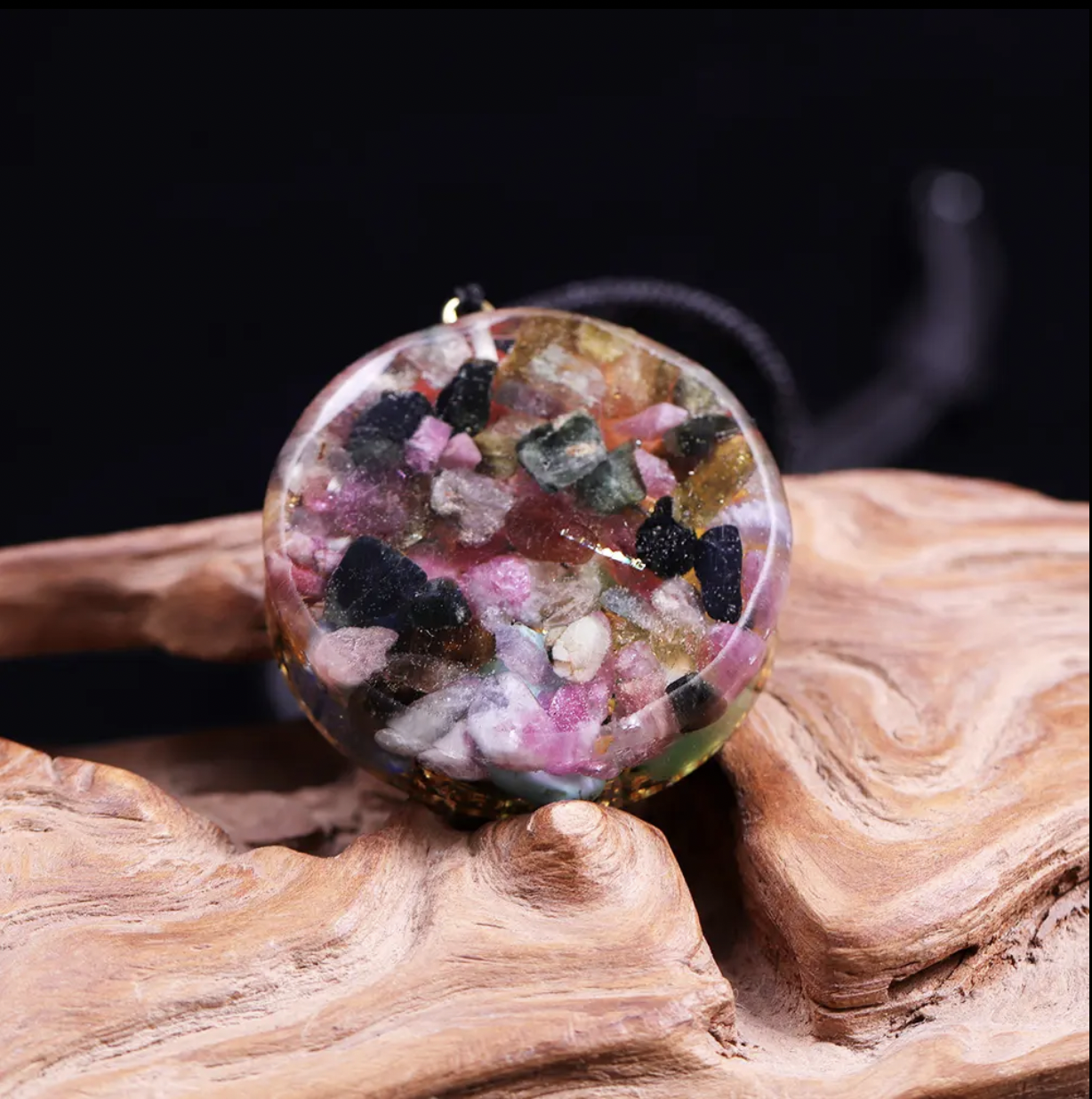 Turmalina, cunoscuta ca o piatra de protectie si purificare energetica, este adaugata pentru a amplifica si a clarifica energia orgonica a pandantivului. Este folosita pentru a respinge energiile negative si pentru a mentine un camp energetic echilibrat.