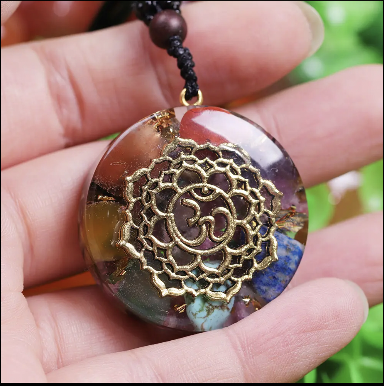 Descopera armonia interioara si echilibrul spiritual cu Pandantivul Orgonit cu simbol OM, incrustat cu cristalele celor 7 Chakre si Turmalina, un generator de energie esential pentru practicile de yoga si meditatie.