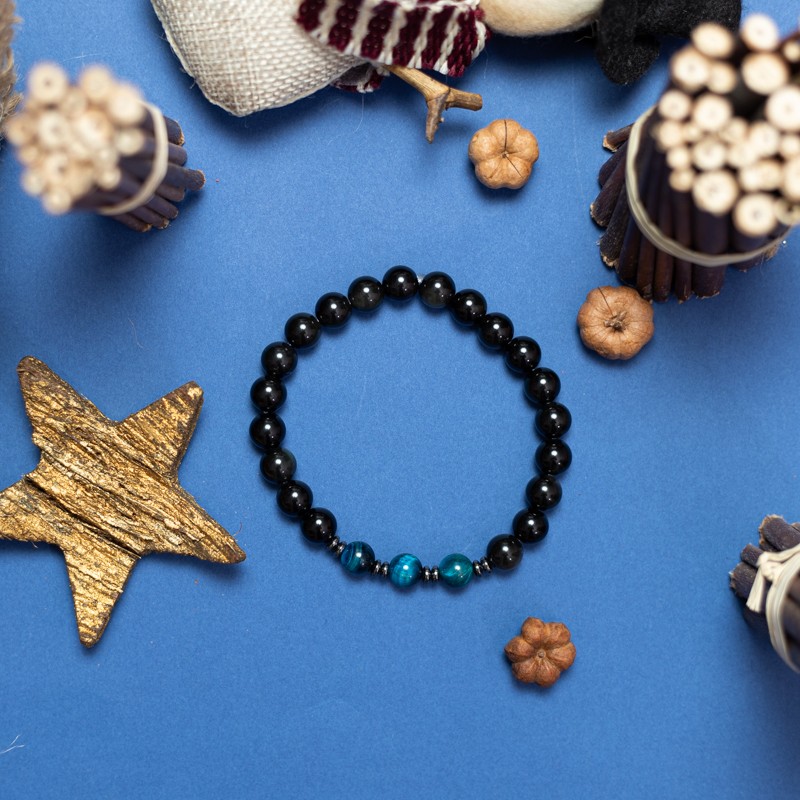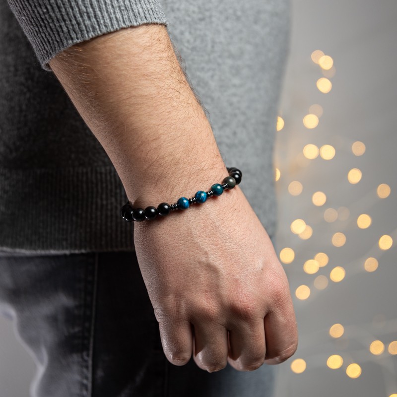 Femeile sunt atrase de barbatii eleganti, atenti la detalii, care au intotdeauna grija ca tinuta lor sa fie impecabila. Cu ajutorul bratarii Elam din cristale de Osidian si Ochi de Tigru Albastru, iti poti pune in evidenta modelul unei camasi elegante, al unei cravate sau chiar al batistei din buzunarul sacoului.