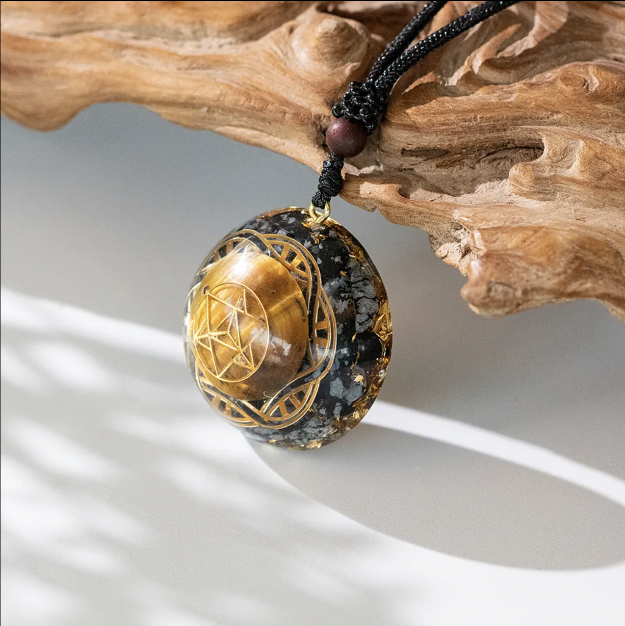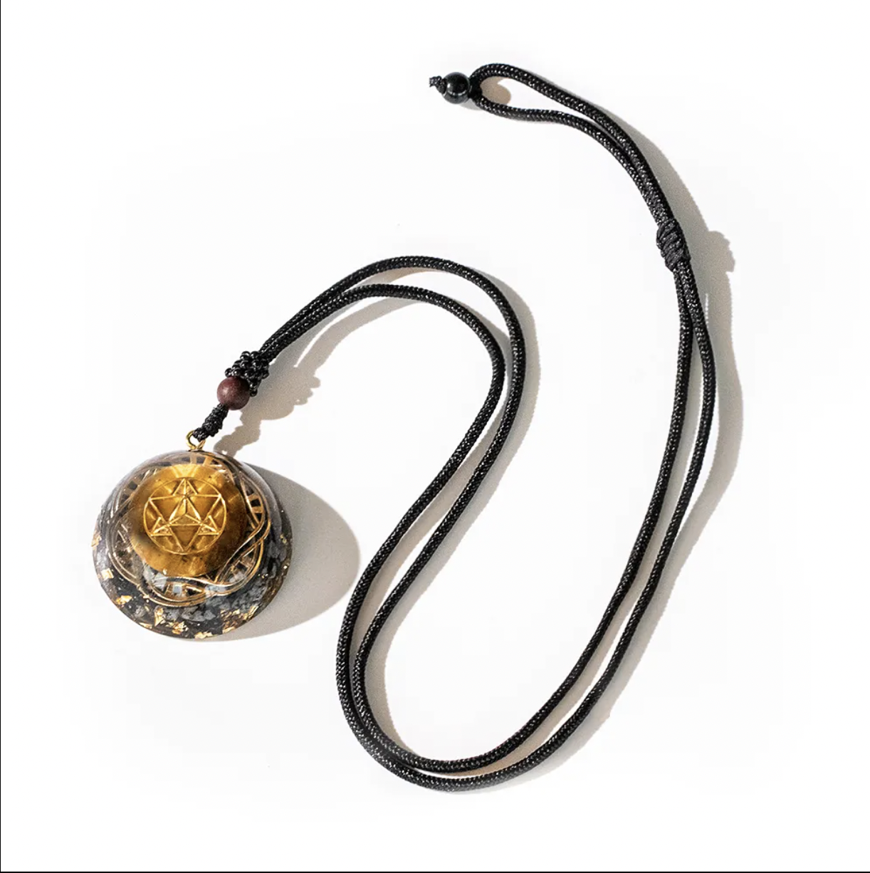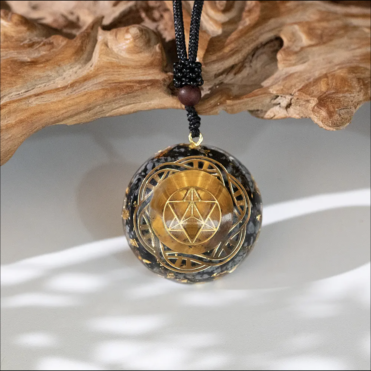 Descopera puterea si misterul intr-un singur element, cu Pandantivul orgonic energetic din Ochi de Tigru si Obsidian, incrustat cu geometrie sacra (simbolul Merkaba), creat special pentru barbatii care cauta echilibru si putere interioara.