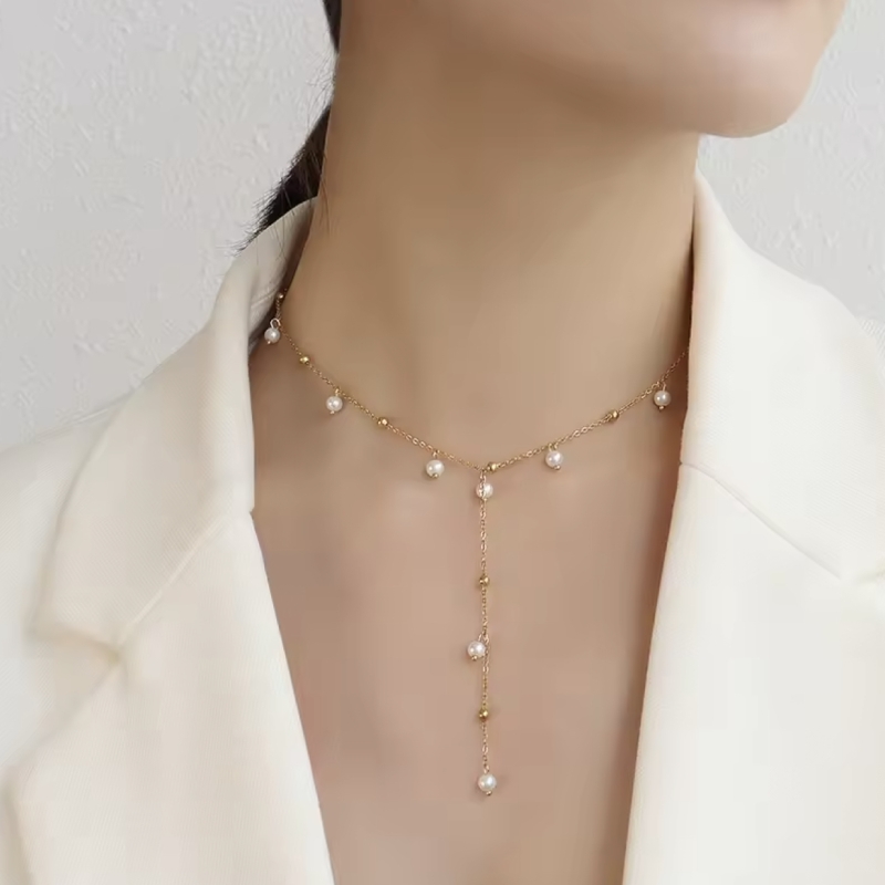 Completeaza-ti tinuta cu elegantul colier tassel cu ciucuri din Perle naturale si otel inoxidabil placat cu Aur. Colierul este un amestec perfect de sofisticare moderna si frumusete clasica prin stralucirea irizata a perlelor naturale. Fiecare detaliu este realizat pentru a te asigura ca acest colier iese in evidenta in orice combinatie vestimentara.