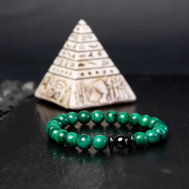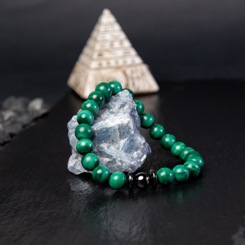 Malachitul este cunoscut drept „piatra transformarii”. Ajuta la aducerea energiei si concentrarea catre o noua crestere, in timp ce elimini aspectele vietii care te retin. Malachitul a fost folosit in mod traditional si pentru a elimina energia negativa. In general, se spune ca malachitul aduce armonie in viata noastra. Purtarea acestuia poate ajuta la manifestarea dorintei inimii si poate intari intuitia.