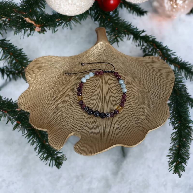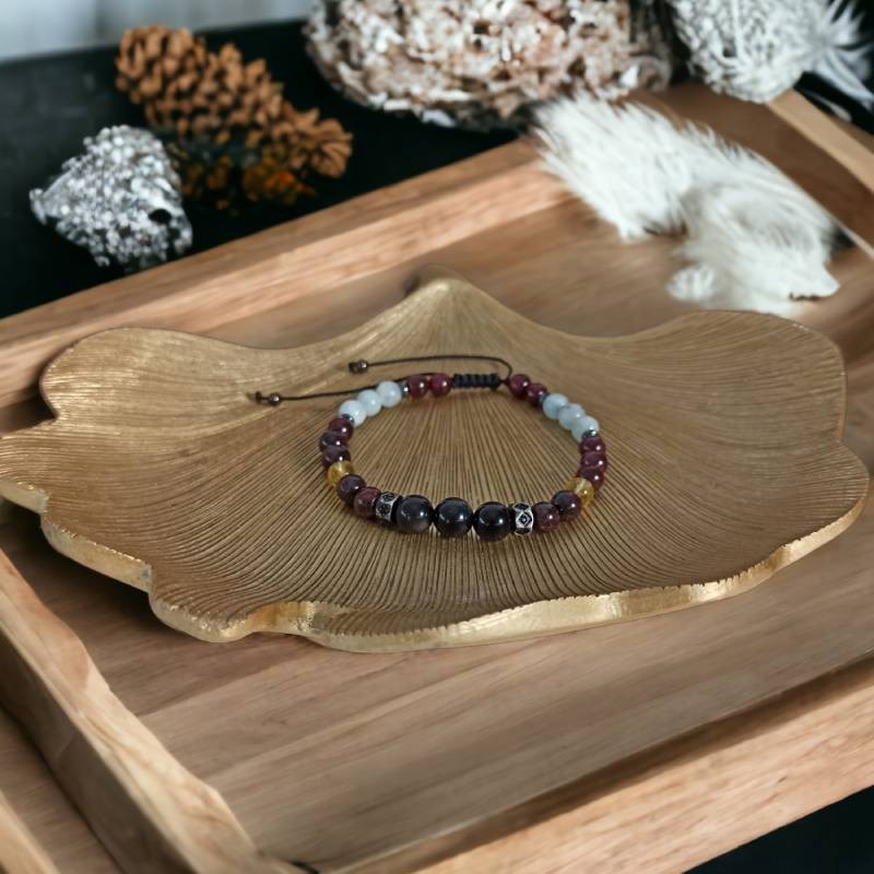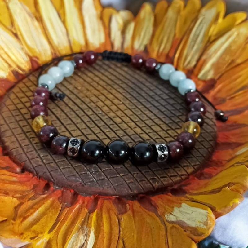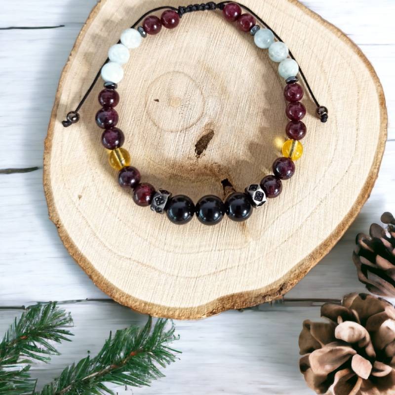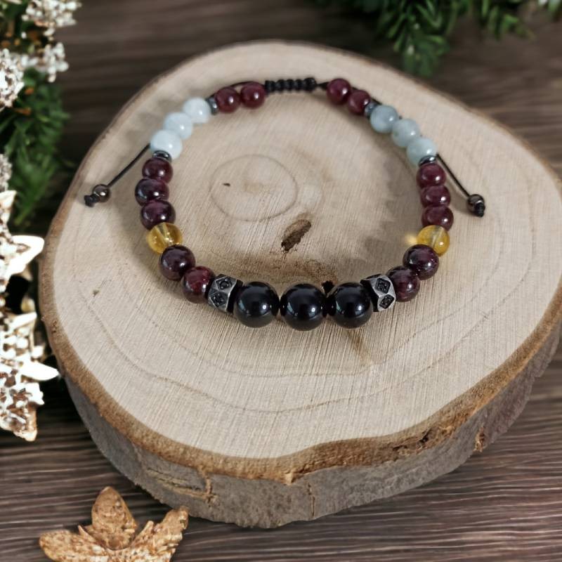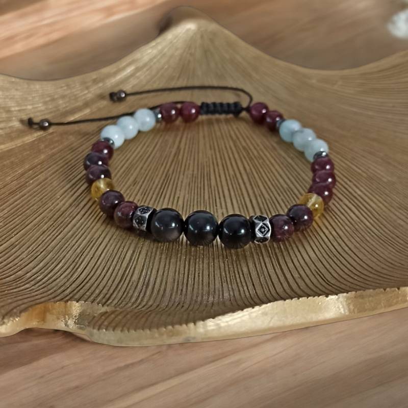 Combinatia de Obsidian, Granat, Citrin, Acvamarin si Hematit creeaza un amestec distinct, oferind o varietate de energii pentru a-ti sprijini eforturile zilnice.