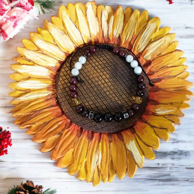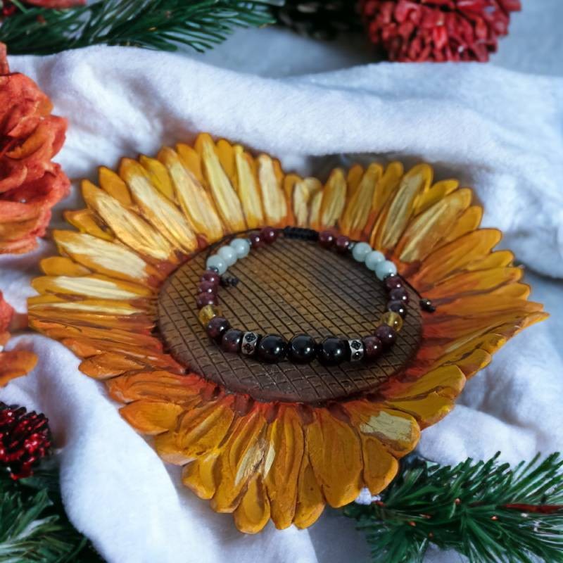 2. **Energia Granatului:** Infuzata cu nuante profunde si pasionale de Granat, aceasta bratara radiaza energie si vitalitate. Granatul este un simbol al angajamentului, facandu-l un partener perfect pentru omul modern.