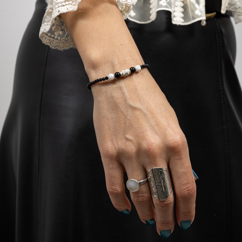 Lasa-te atrasa de bratara Shrey din cristale naturale de spinel negru. Micile margele fatetate vor straluci minunat la mana ta, accesorizand-ti tinuta indiferent de ocazie.