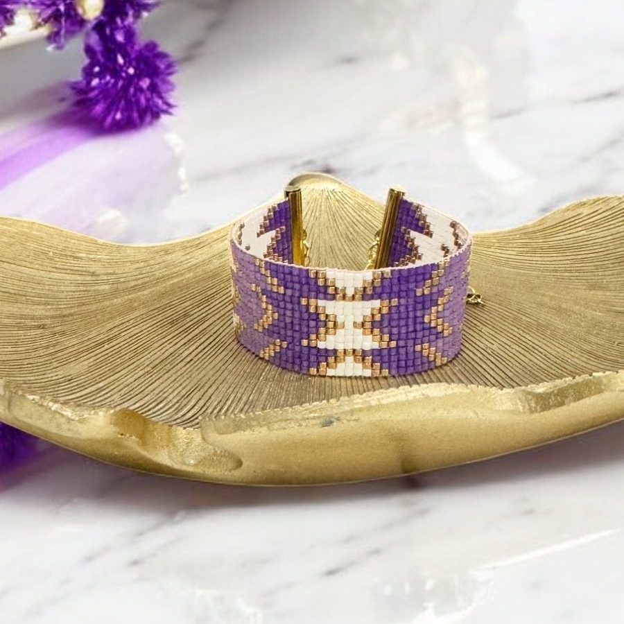 Descopera bratara Poesis, o bijuterie unica realizata din margele Miyuki de calitate superioara, impletita manual cu atentie la fiecare detaliu. Aceasta bratara eleganta este o alegere ideala pentru femeile care apreciaza accesoriile fine si designul sofisticat.