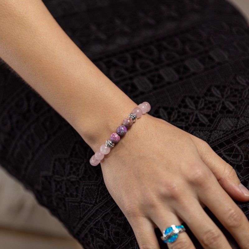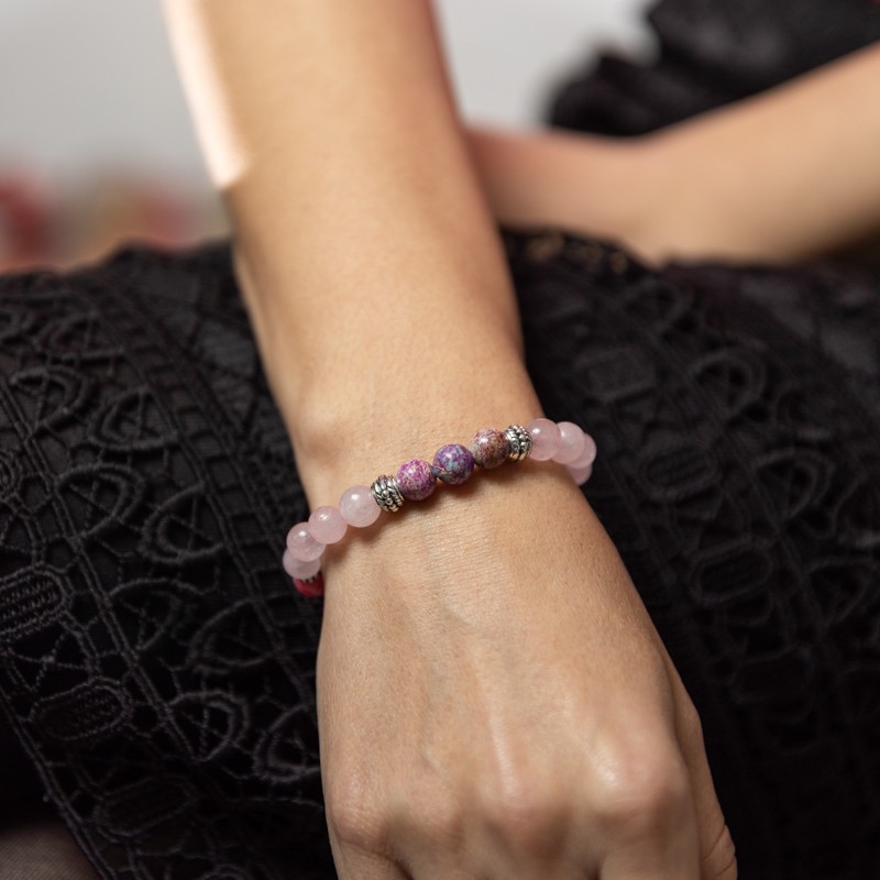 Pentru a nu da gres, iti poti indrepta atentia catre bijuterii. Orice femeie le adora si nu va avea niciodata suficiente modele! In acest sens, trebuie sa stii ca o optiune excelenta este bratara din pietre semipretioase Abena din Cuart Roz, Agata Mov si Rodocrozit.