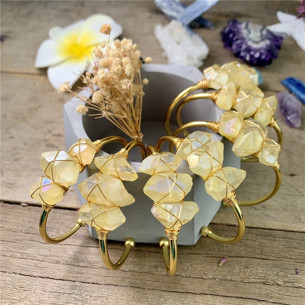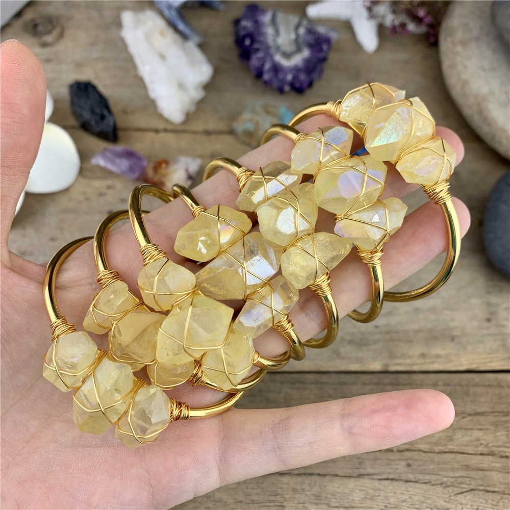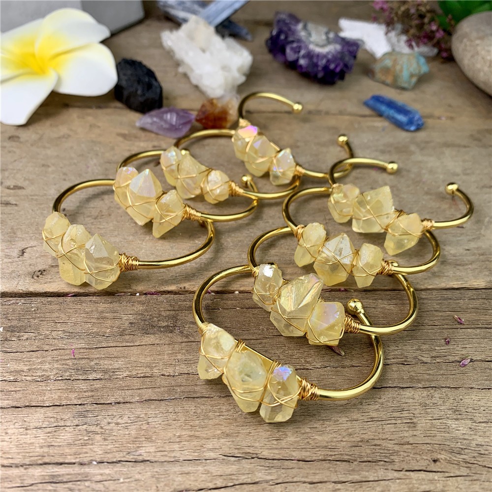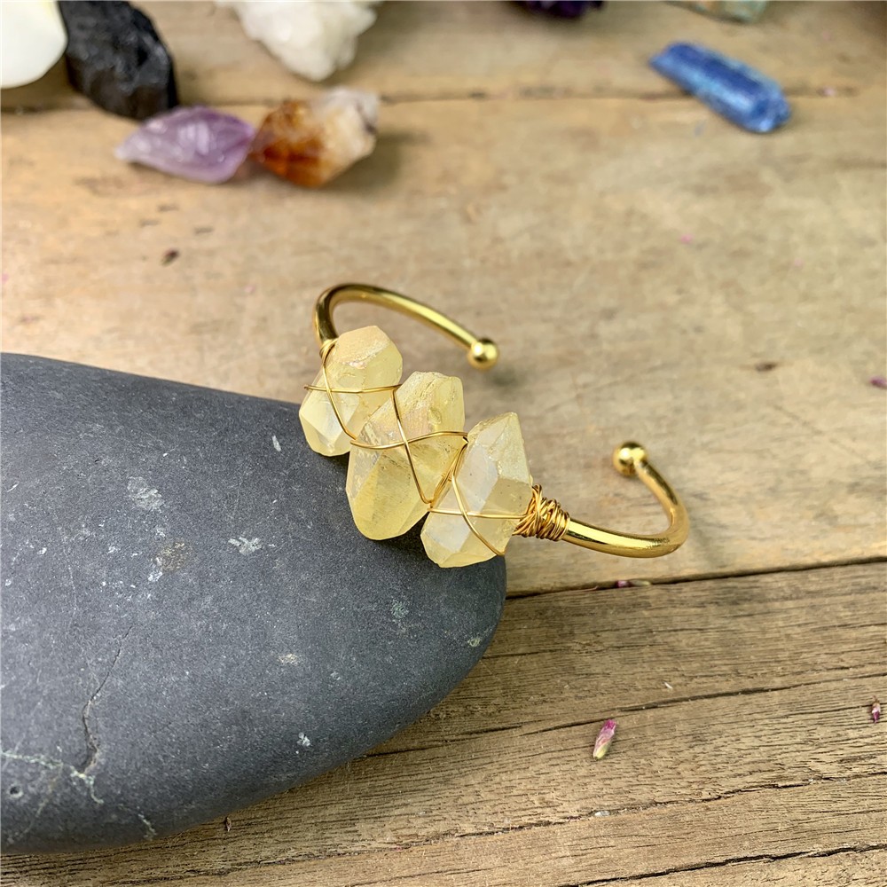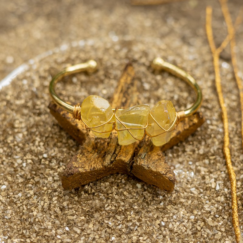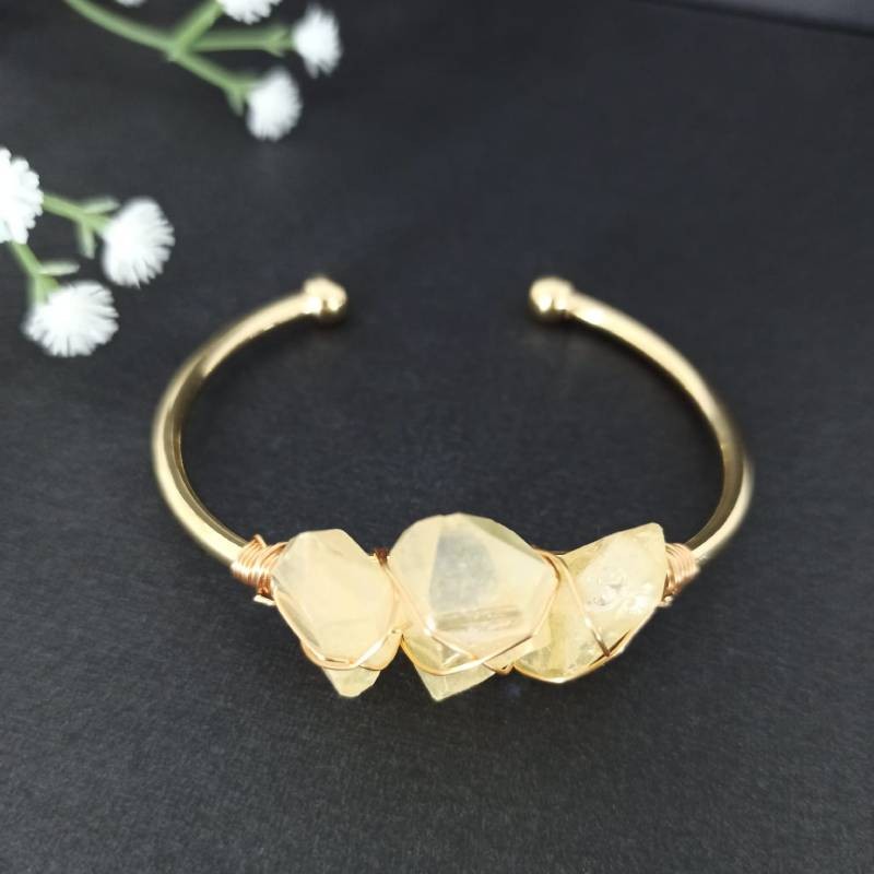 Bratara pietre semipretioase Citrin brut, Meenal, din cupru placat cu Aur de 18K