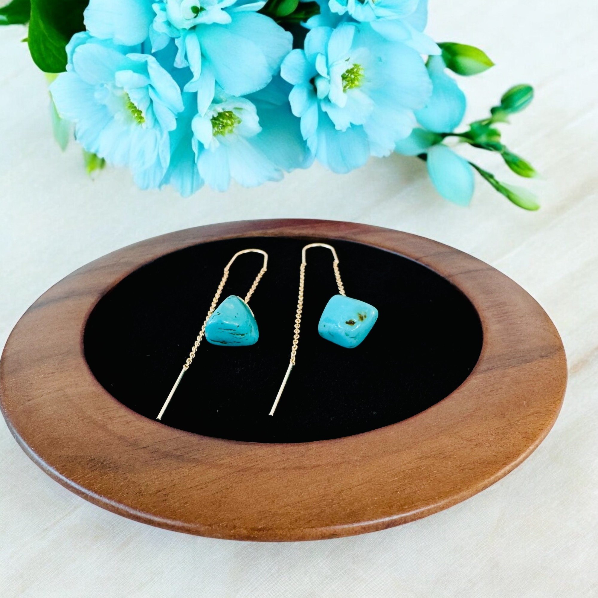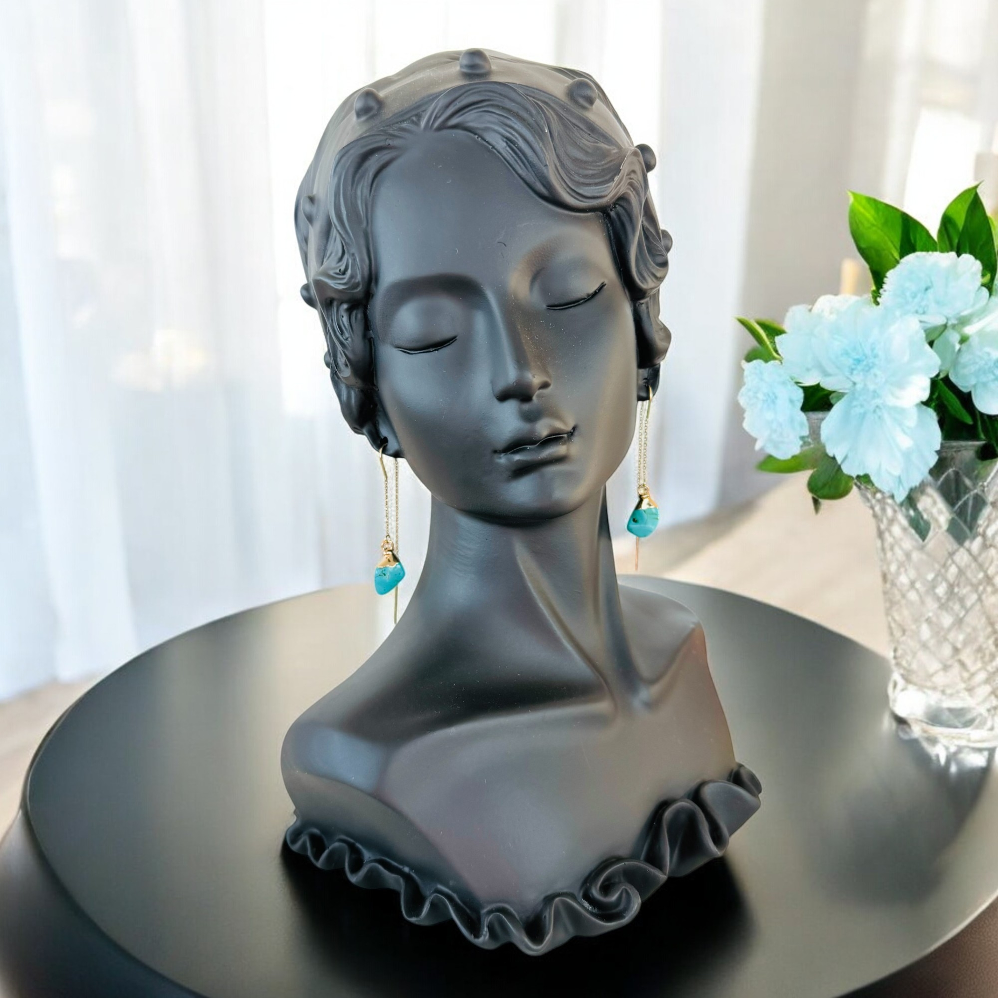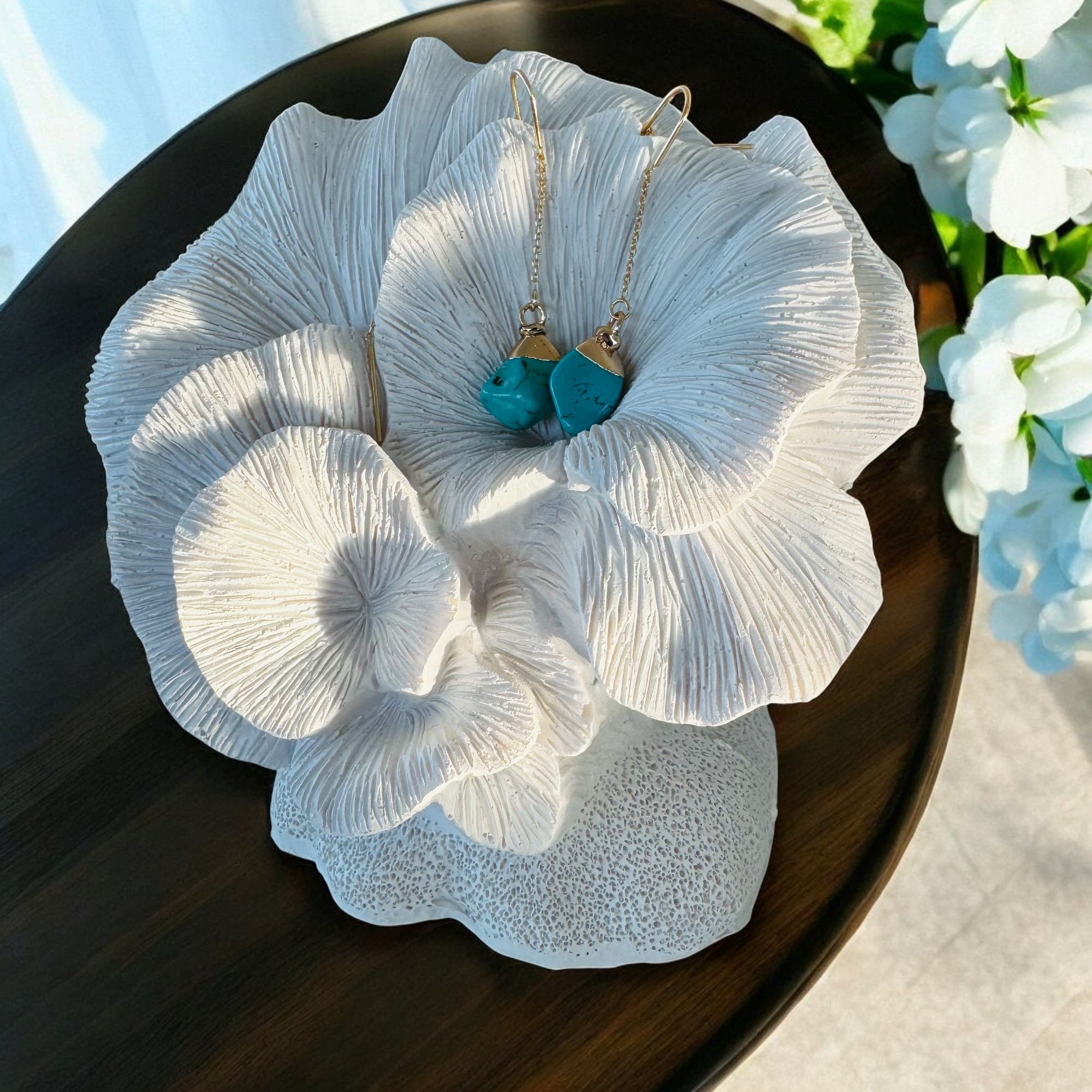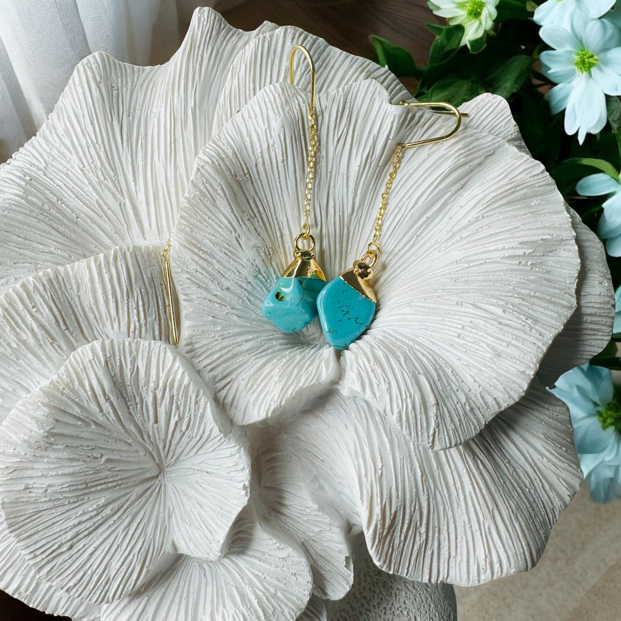 Placarea cu aur adauga un contrast elegant cu nuanta unica a turcoazului, oferind cerceilor un aspect luxos si usor de asortat cu diverse stiluri. Finisajul aurit reflecta lumina si adauga o stralucire suplimentara, facand acesti cercei perfecti atat pentru evenimente speciale, cat si pentru a adauga un accent de eleganta tinutelor tale de zi cu zi.