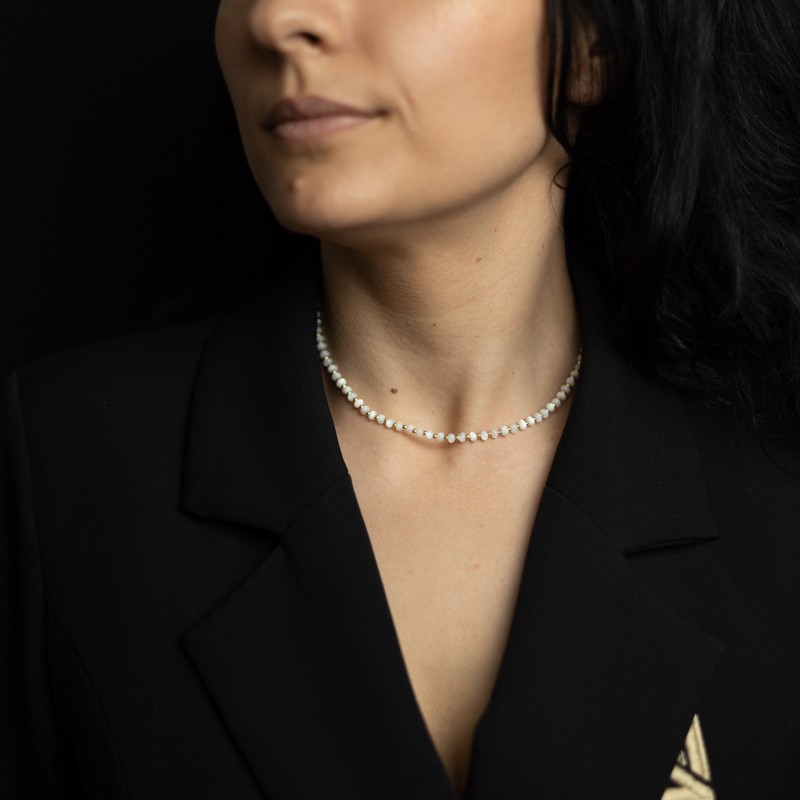 Cauti un colier din pietre naturale la baza gatului? Ce spui de colierul choker elegant cu perle Mother of Pearls?