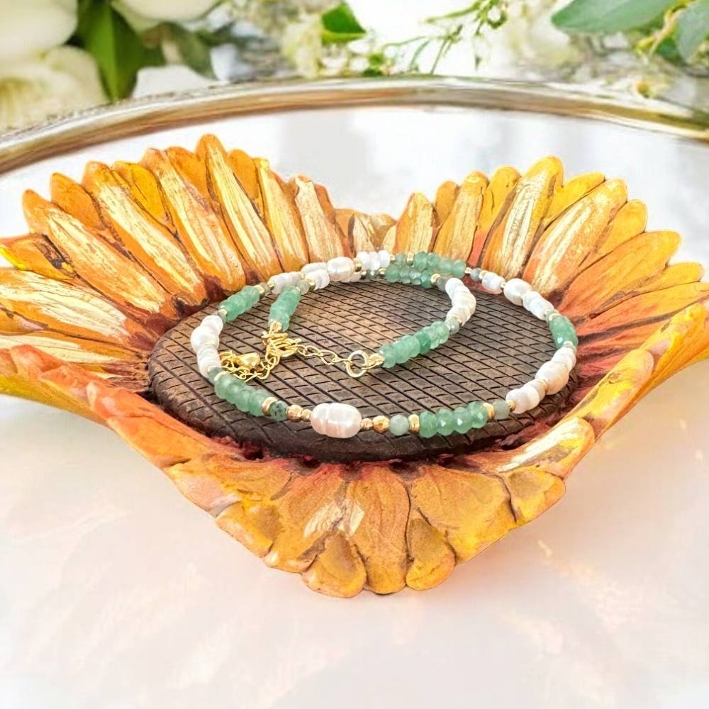 Jadul verde, cunoscut pentru proprietatile sale protectoare, aduce echilibru si liniste, in timp ce perlele naturale simbolizeaza eleganta pura si feminitatea. Impreuna, aceste pietre nu doar ca iti vor completa tinutele, dar vor oferi si un sentiment de binecuvantare si armonie.