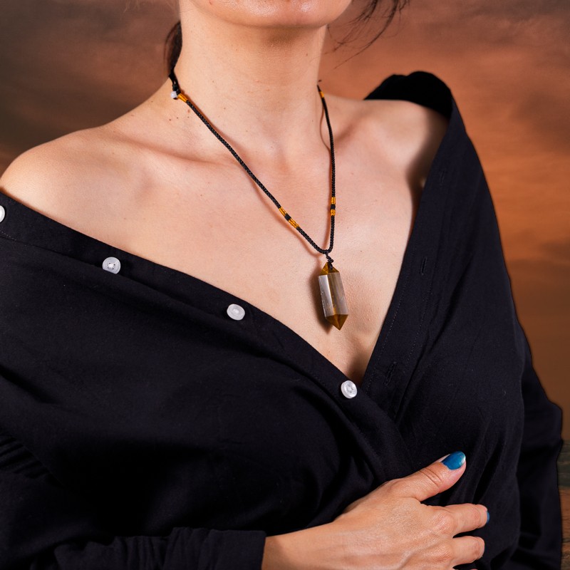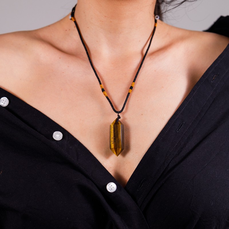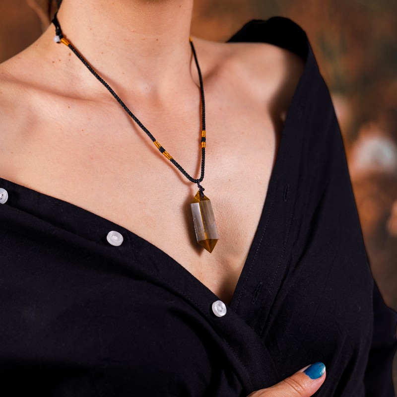 Ramai cu mine sa exploram beneficiile exceptionale ale purtarii unui colier cu cristal din ochi de tigru cu doua terminatii si modul in care acesta iti poate imbunatati bunastarea generala si puterea interioara.