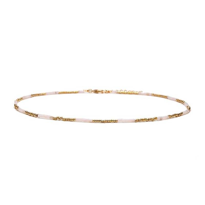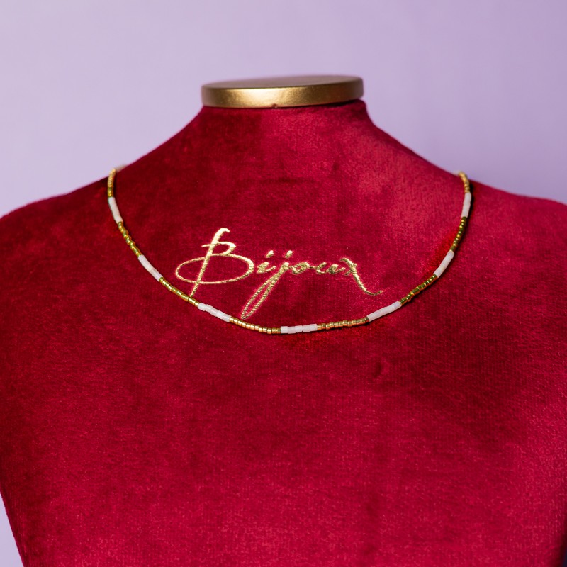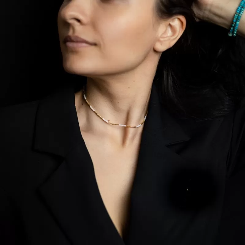 Daca te indrepti spre look-ul modern glam, atunci poti evidentia acest look purtand unele dintre choker-ele noastre din pietre naturale si Miyuki Seed aurii, asociate cu o tinuta viu colorata.