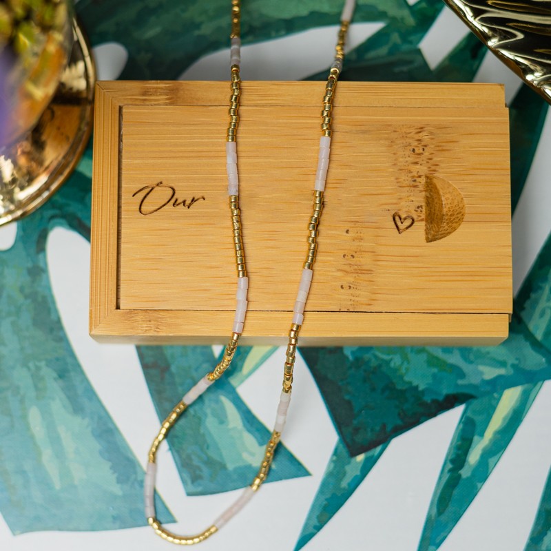 Cauti un colier din pietre naturale la baza gatului? Ce spui de colierul choker elegant cu cristale de Cuart Roz si Sunstone Miyuki Seed Vania?