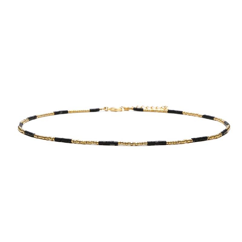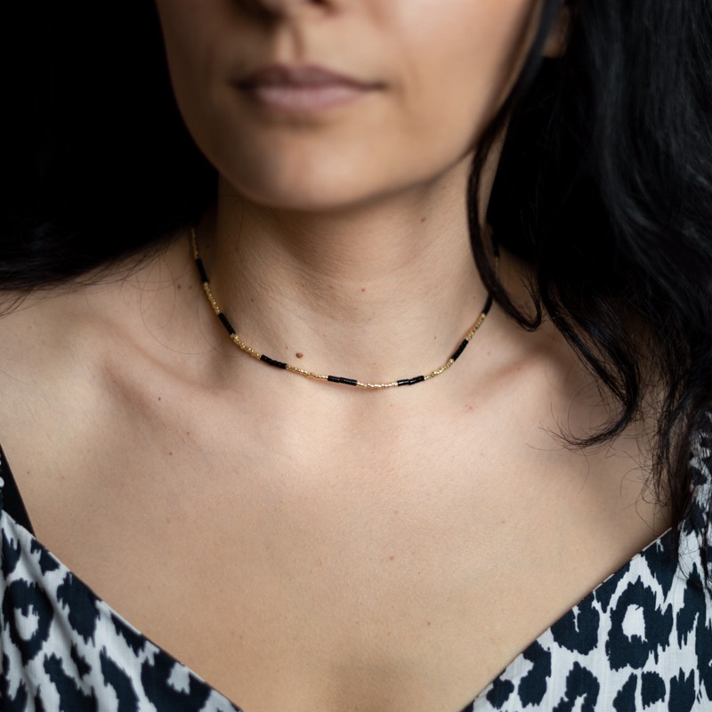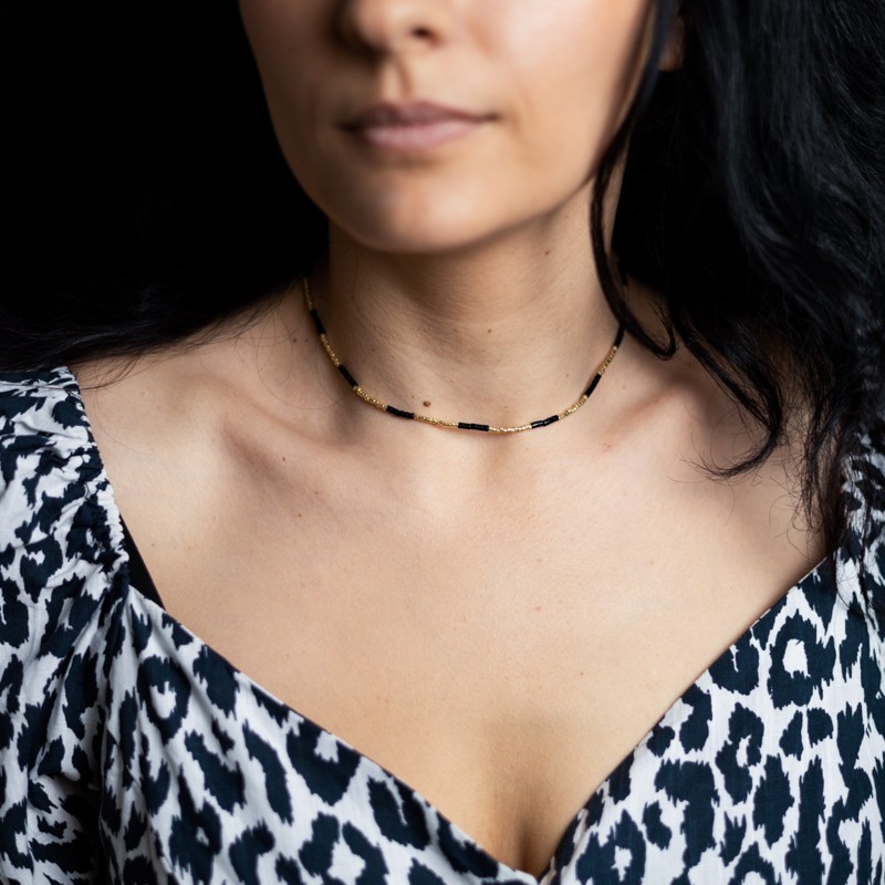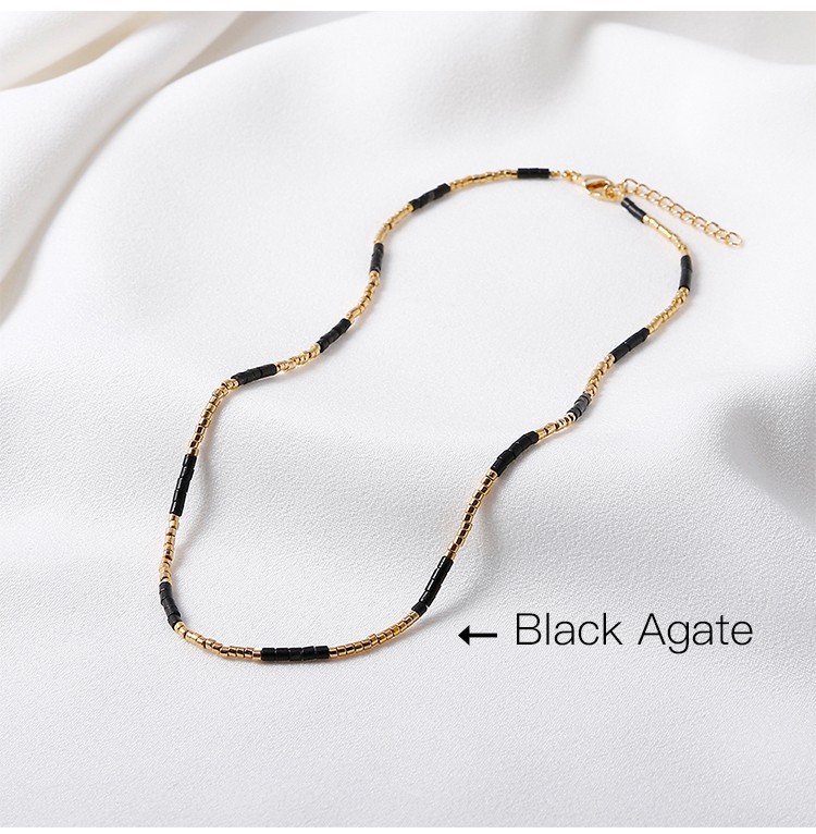Cauti un colier din pietre naturale la baza gatului? Ce spui de colierul choker elegant cu Agat Negru si Sunstone Miyuki Seed Vania?