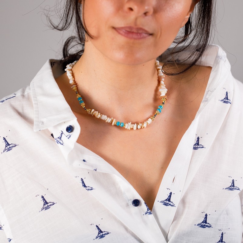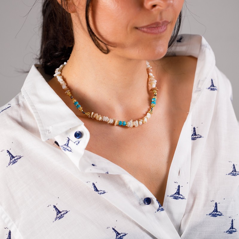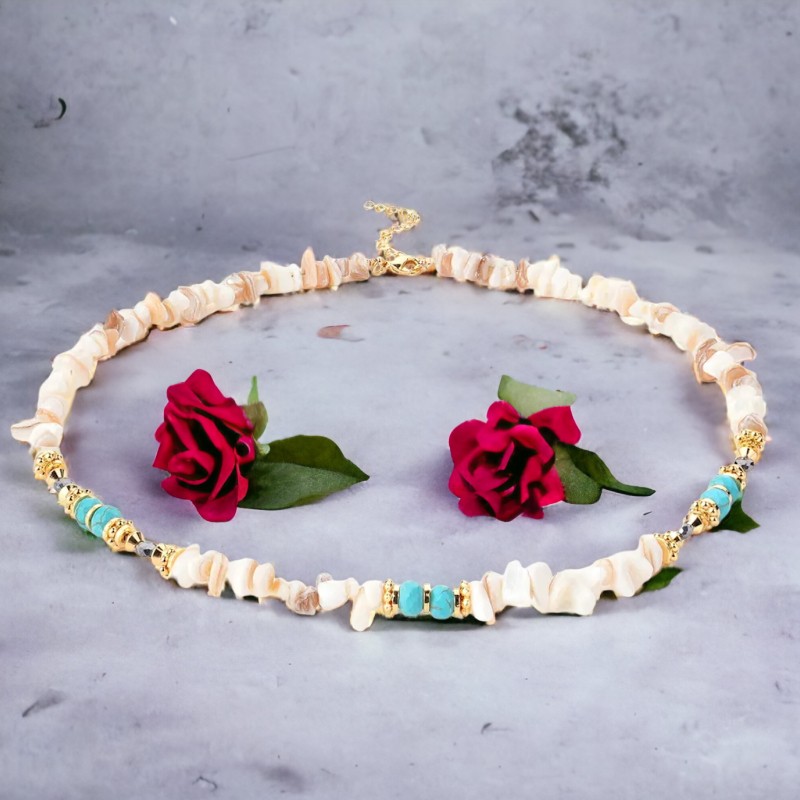 Acest colier nu este doar un accesoriu la moda, ci si un simbol semnificativ al frumusetii naturii. Folosirea scoicilor autentice serveste ca o amintire blanda a comorilor pretioase gasite de-a lungul tarmului, servind ca un semn de apreciere pentru minunile marii.