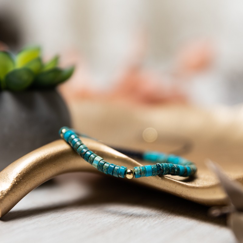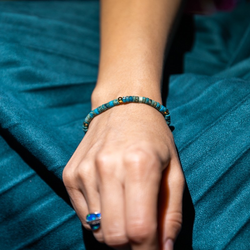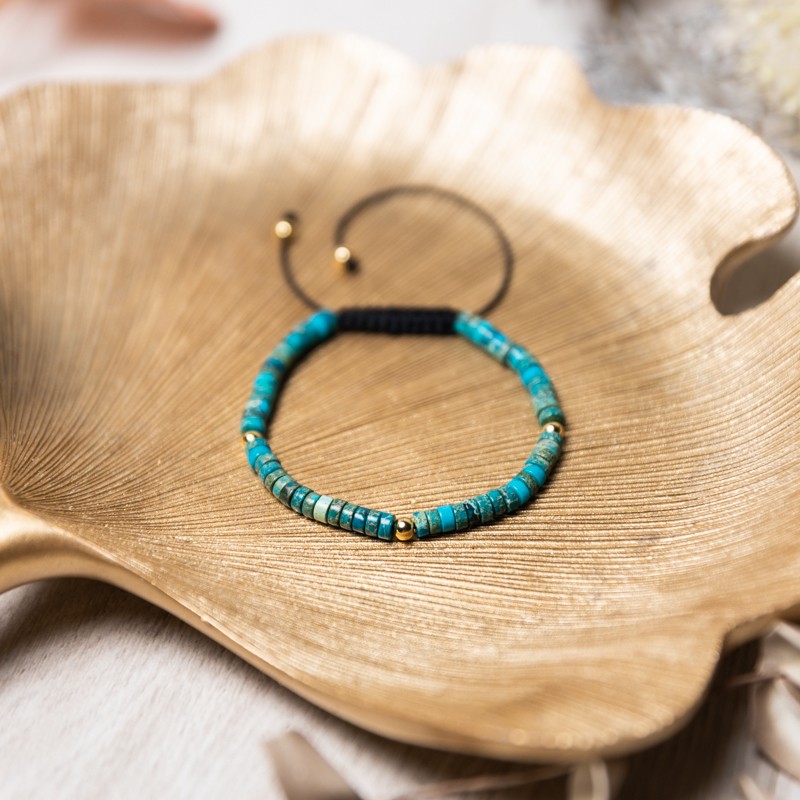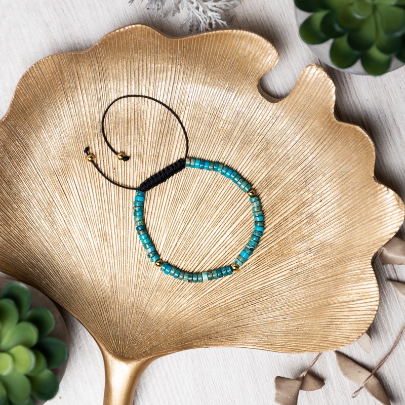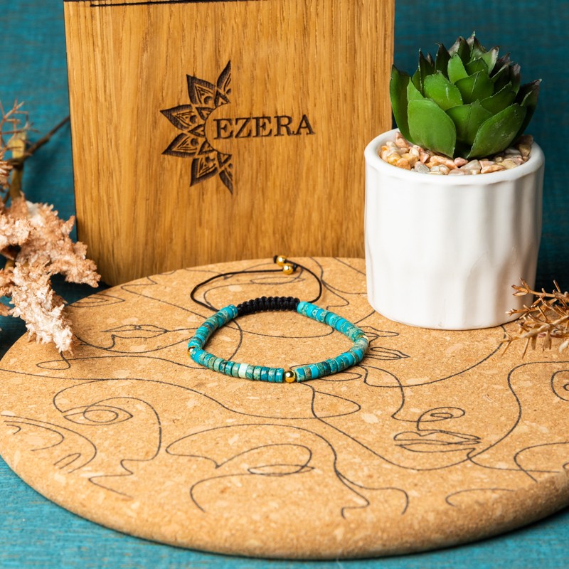Esti in cautarea unui cadou pentru o fata care adora culoare turcoaz? Esti in locul potrivit :) Nu vei da gres daca vei alege bratara Ina din Sediment Marin de Jasp Turcoaz. O bratara ajustabila care va incununa cu eleganta orice incheietura.