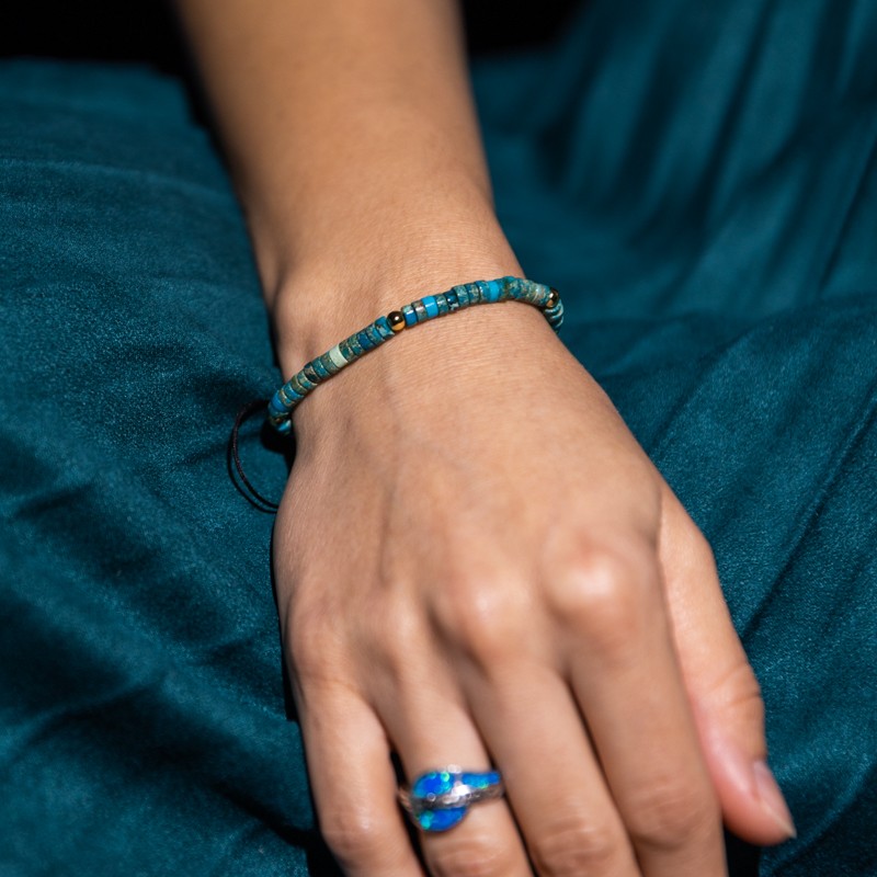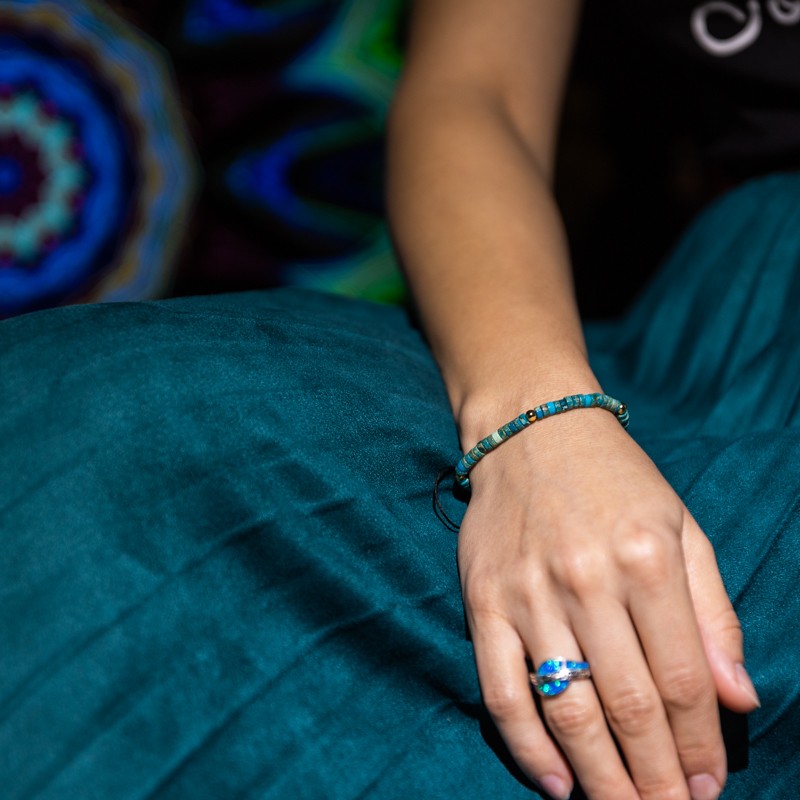 Sedimentul Marin Turcoaz este o piatra a pacii interioare, iubirii, empatiei si gandurilor clare. O piatra uimitoare pentru Chakra Radacina sprijinind vindecarea emotionala si purtand o conexiune puternica cu energia pamantului, despre care se crede ca amelioreaza oboseala si epuizarea. Jasp-ul este in mod natural o piatra de temelie si ofera sprijin in perioadele de stres.