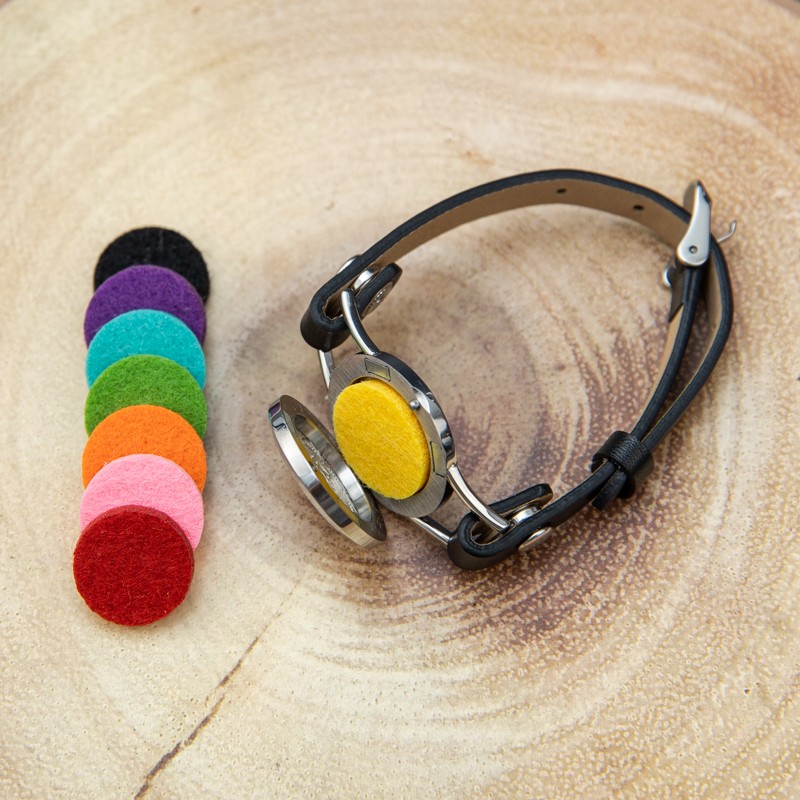 Bratara este foarte usor de utilizat! Se deschide pe una din laturile sale, se introduce unul dintre cele 8 discuri de pasla fetru, se pun 1-3 picaturi de ulei esential pe material si apoi se inchide magnetic. In functie de uleiul pe care il alegi, te vei putea bucura de aroma lui placuta pentru minim 12 - 24 ore.