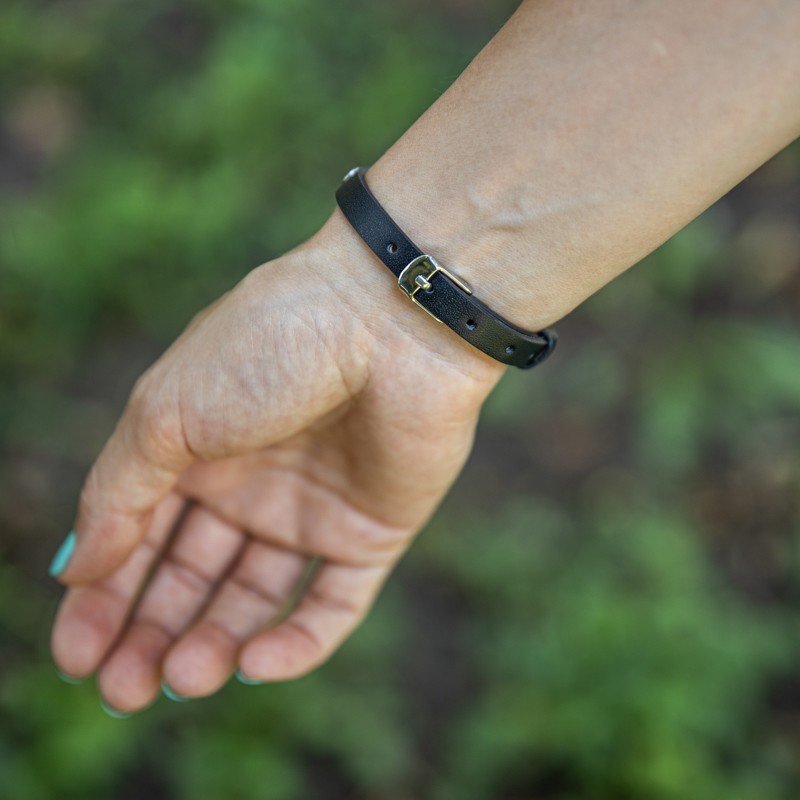 Bratara din piele ecologica are o marime reglabila, cu catarama mica si eleganta, putand fi accesoriul potrivit oricarei tinute.