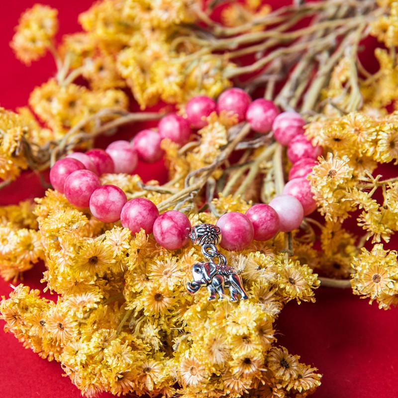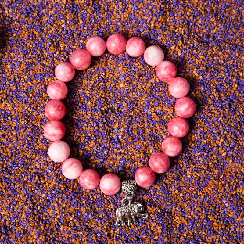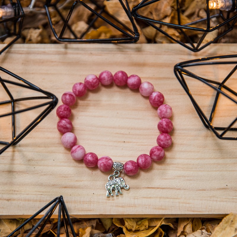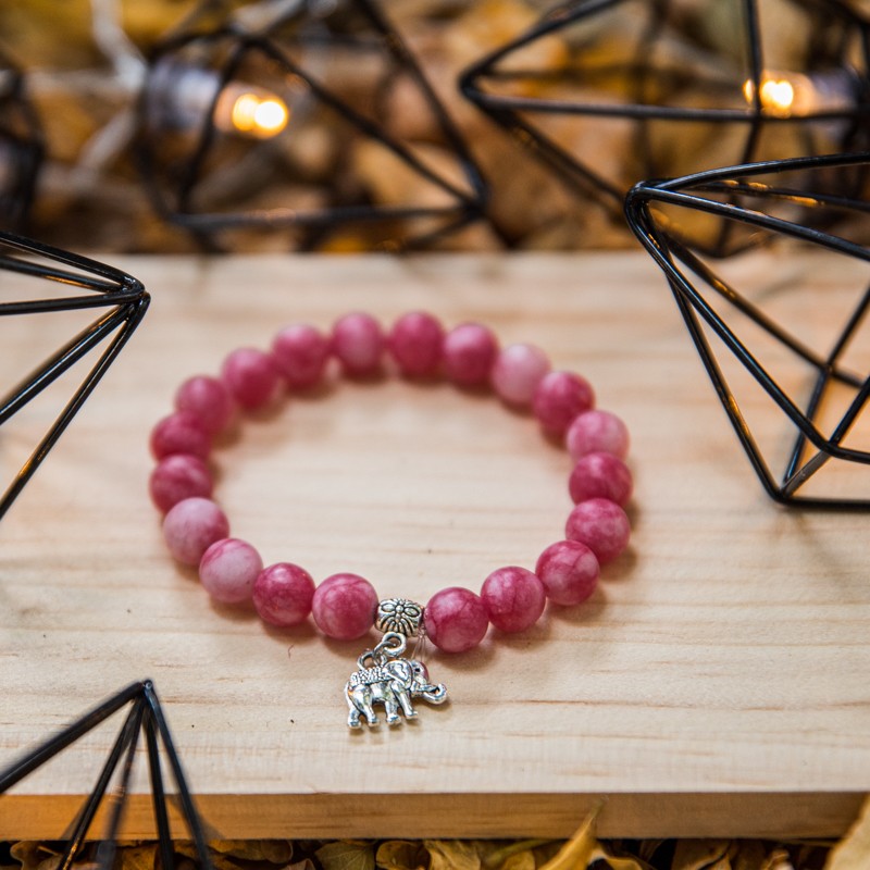 Bratara “Paloma” cu pietre semipretioase, Rodocrozit Roz si Charm Elefant, pentru femei, margele de 8mm