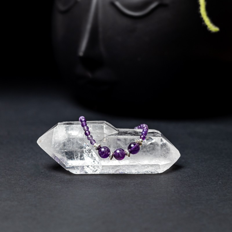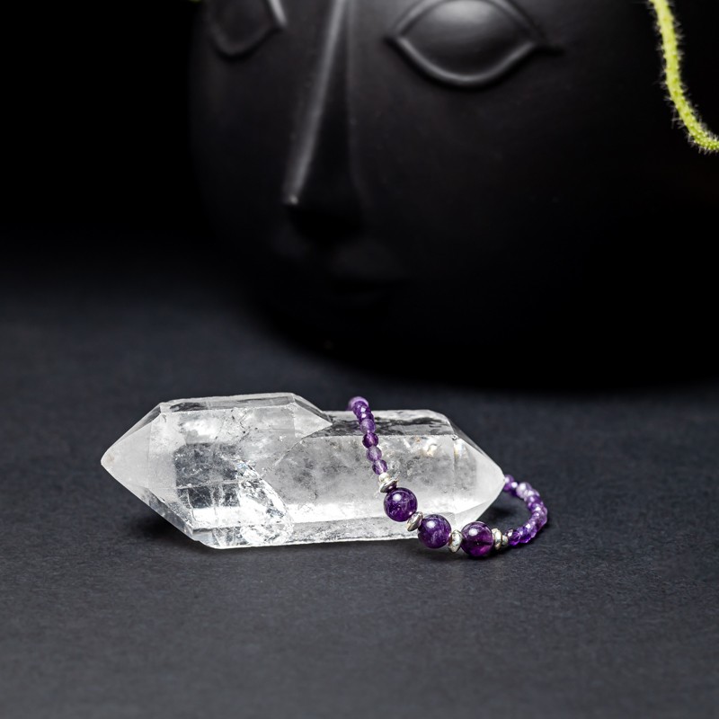 Nuanta purpurie profunda a ametistului emana un sentiment de calm si pace. Cu fiecare miscare, straluceste de parca ar fi viu si ar dansa de bucurie. E genul de piatra cu care te simti conectat, frumusetea si energia ei radiind prin tine pentru a te umple de un sentiment de seninatate. Ametistul este cristalul care te face sa te simti de parca o greutate mare ti-a fost luata de pe umeri si ai simtit o legatura cu ceva mai mare decat tine. Purtarea unei bijuterii din Ametist este ca si cum ai imbratisat o prezenta iubitoare. Frumusetea si energia cristalului iti va aminti de frumusetea si puterea vietii.