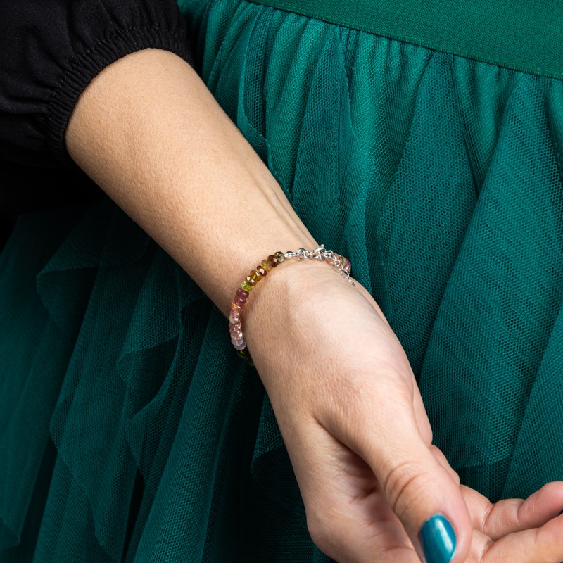Bratara Felicity din turmalina multicolora rondele A++, inchidere din Argint 925