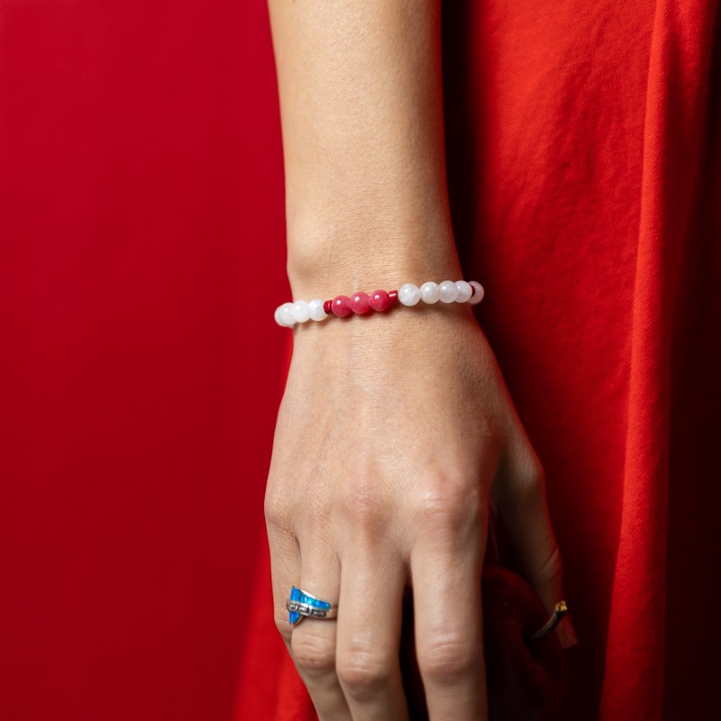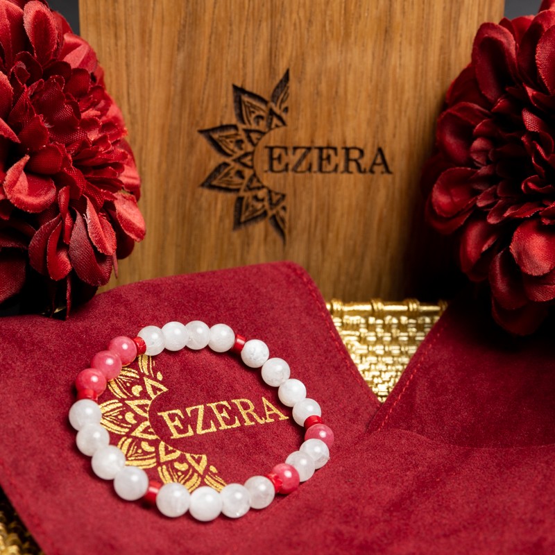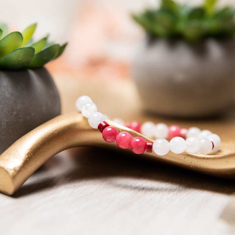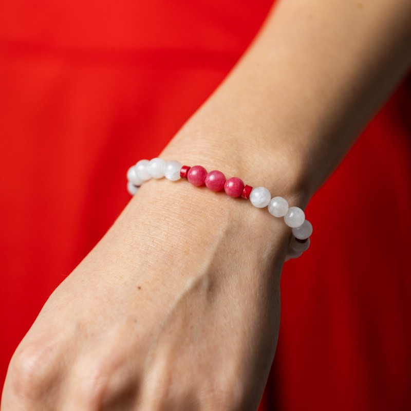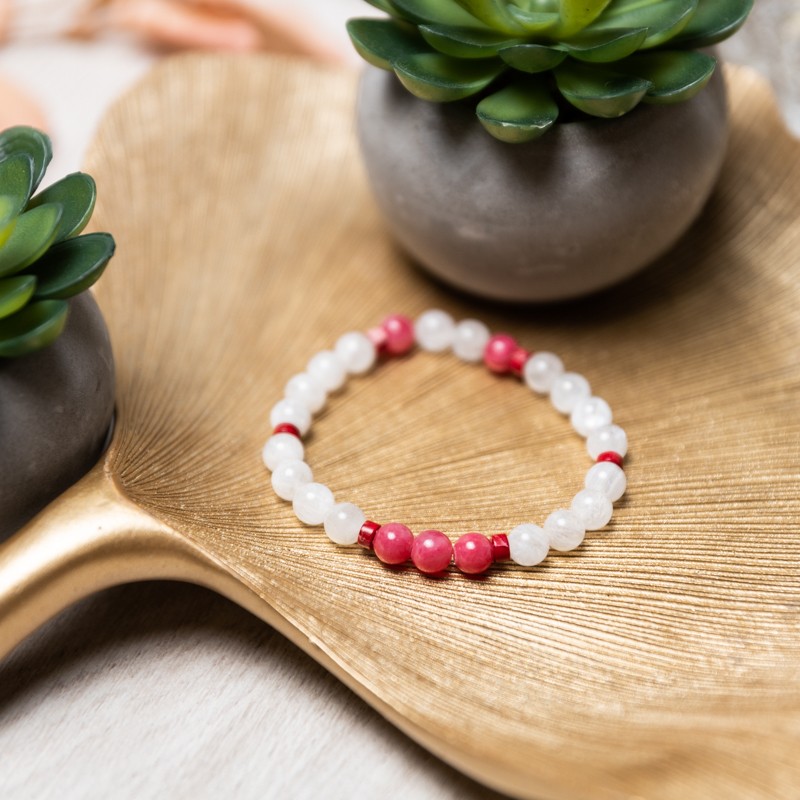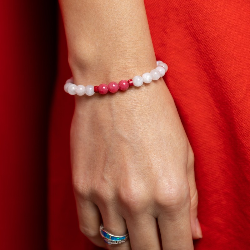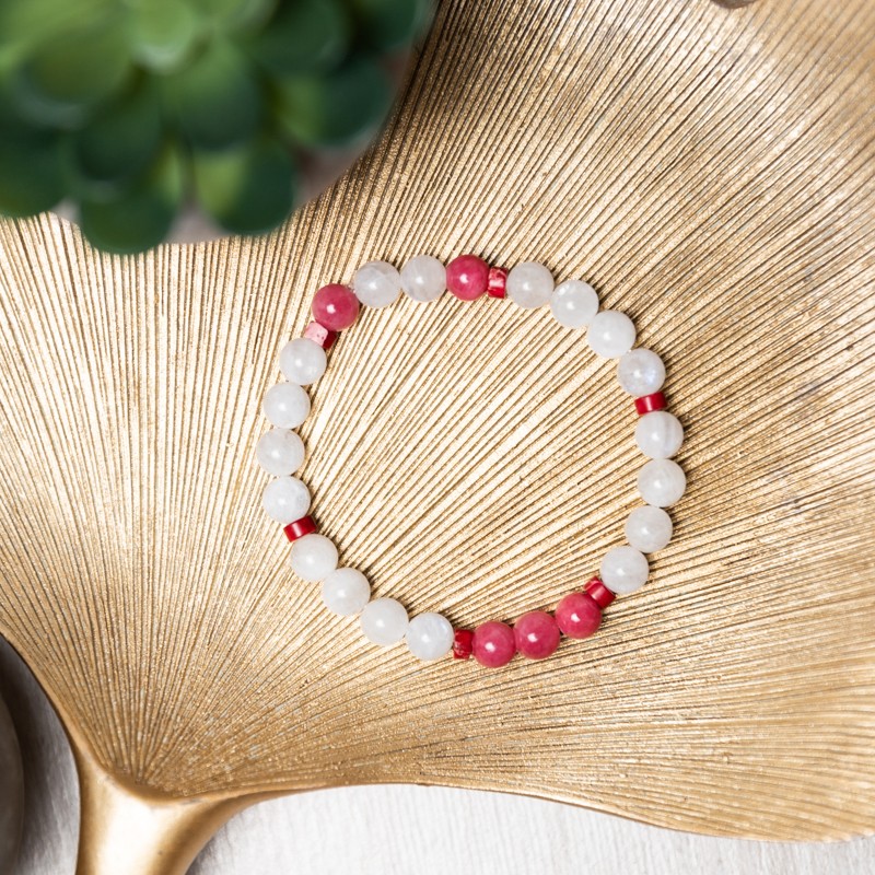 Cauti o bratara pe care sa o oferi iubitei tale de Ziua indragostitilor sau de Martisor? Ce spui de frumoasa bratara din pietre semipretioase Alma cu cristale de Jad Rosu si Piatra Lunii?