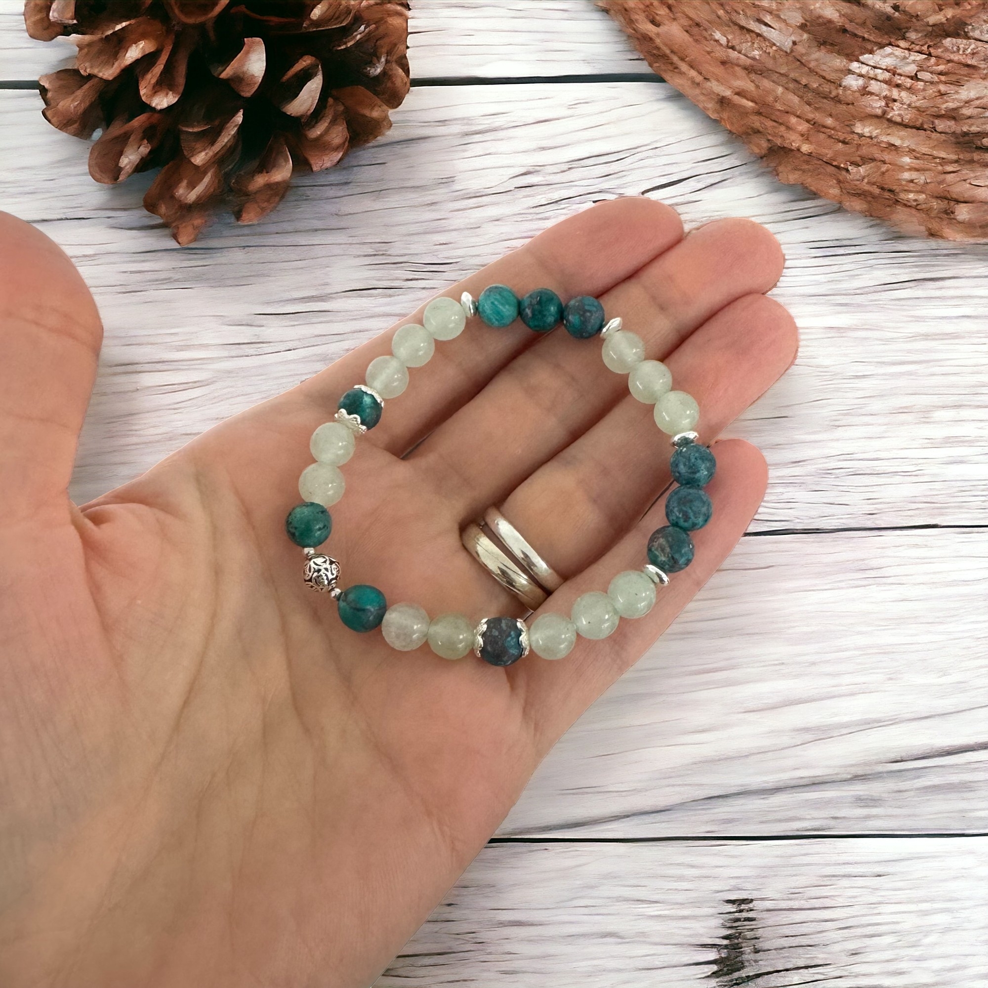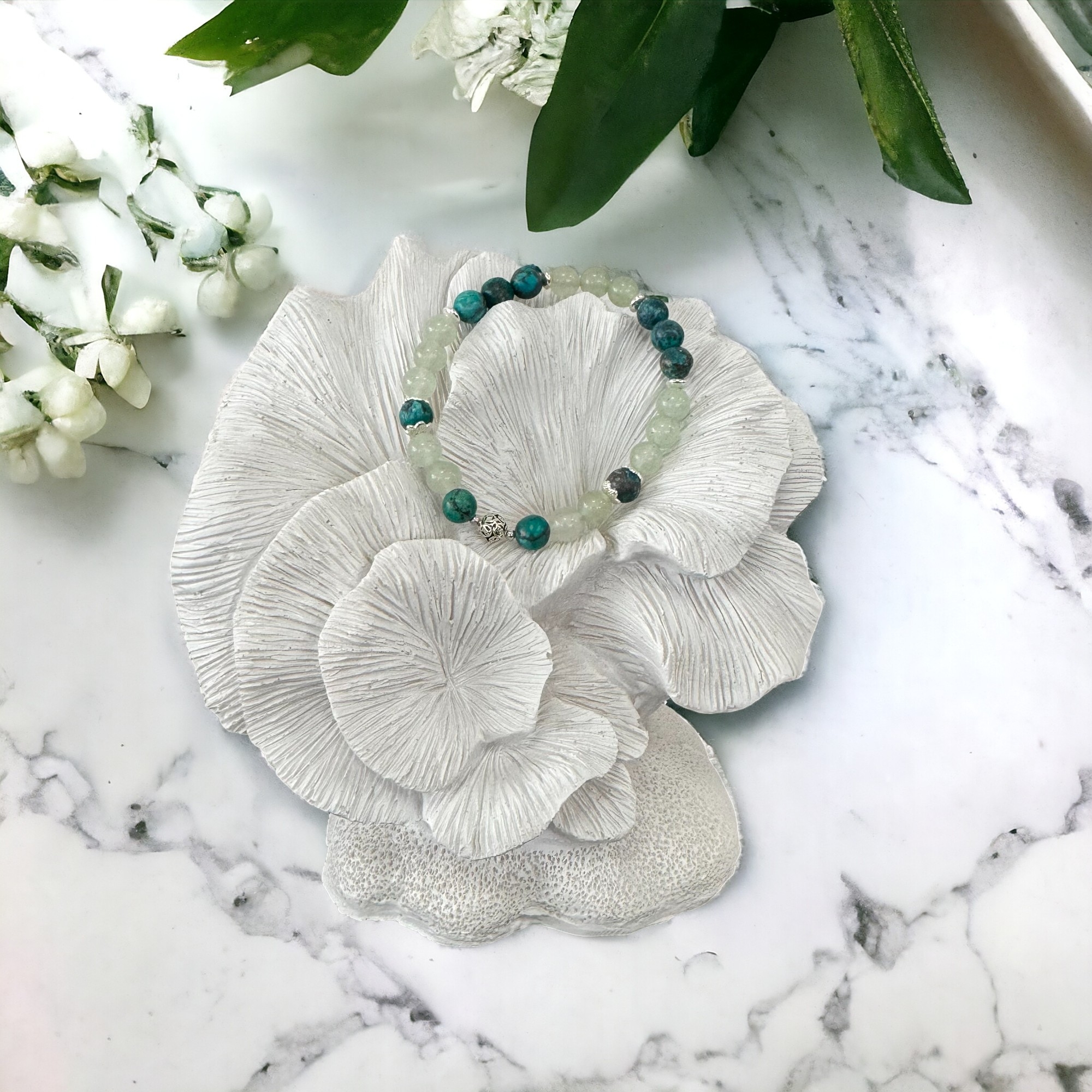 - *Autenticitate si unicitate*: Fiecare bratara este realizata manual, cu cristale autentice de Aventurin si Turcoaz, astfel incat sa ai parte de un accesoriu unic si de calitate superioara. Nu vei gasi doua bratari identice, ceea ce iti confera o nota distincta si personalizata.