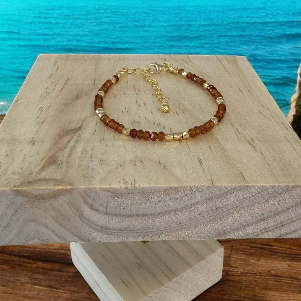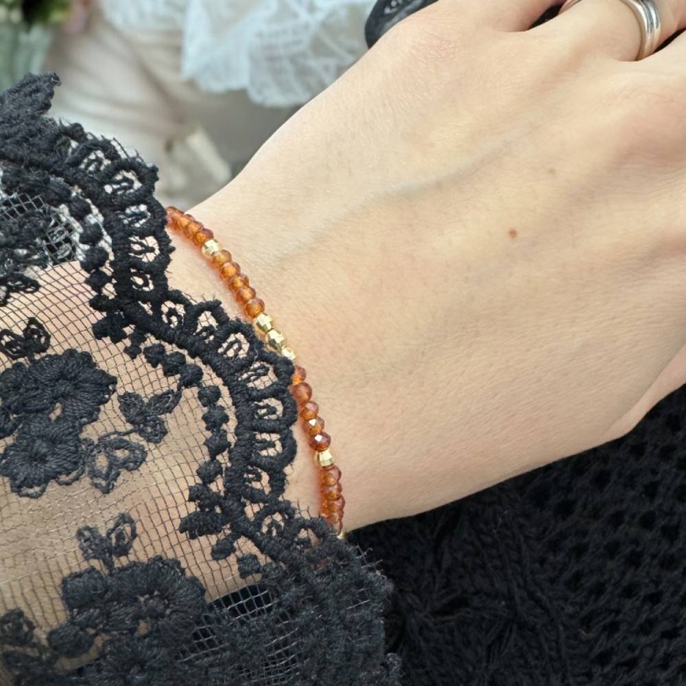 Bratara Farida este o piesa unica, care reflecta personalitatea purtatoarei si o incurajeaza sa isi exprime latura creativa si sa aduca energie pozitiva in jurul sau. Fiecare detaliu al bratarii a fost gandit pentru a oferi un echilibru perfect intre frumusetea estetica si proprietatile terapeutice ale granatului portocaliu.
