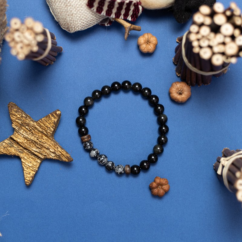 Se spune ca Obsidianul SnowFlake/ Fulg de Zapada purifica si impamanteaza corpul, sufletul si aura. Centreaza si concentreaza atentia, ceea ce poate fi cu adevarat util celor care lucreaza in medii haotice sau stresante. Negrul obsidianului si albul fulgilor de zapada reprezinta echilibrul intre intuneric si lumina, iar aceasta piatra este cunoscuta a fi aducatoare de echilibru intre doua laturi opuse.