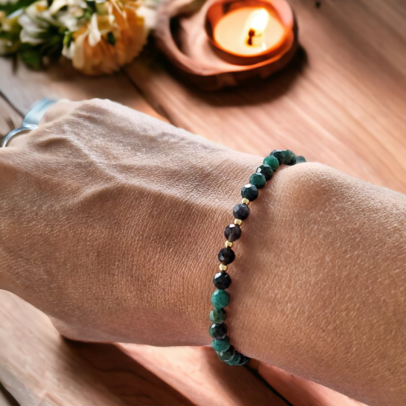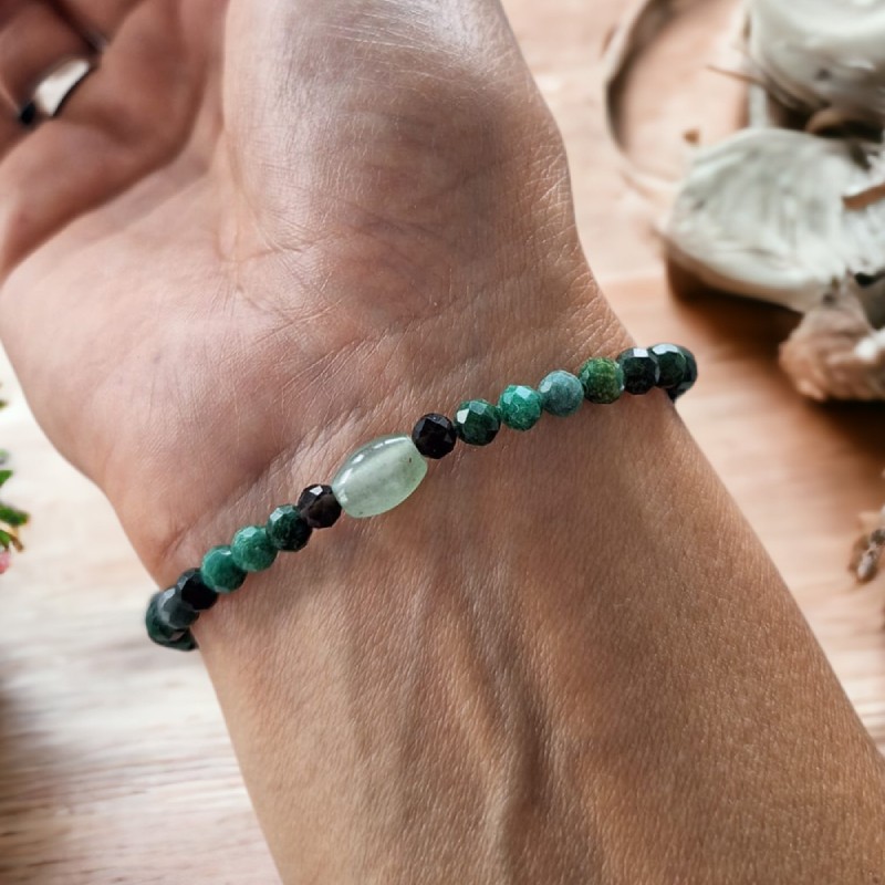 Cristalele de Smarald African, cu nuante lor de verde intens amintesc de padurile tropicale luxuriante. Ele par sa-ti inconjoare incheietura mainii ca un cocon protector, oferind un sentiment de siguranta si o conexiune cu lumea naturala.