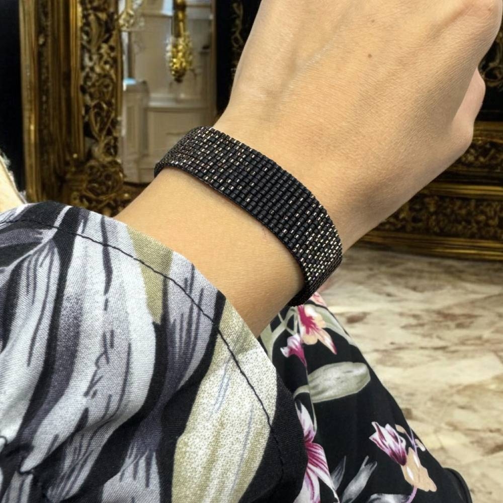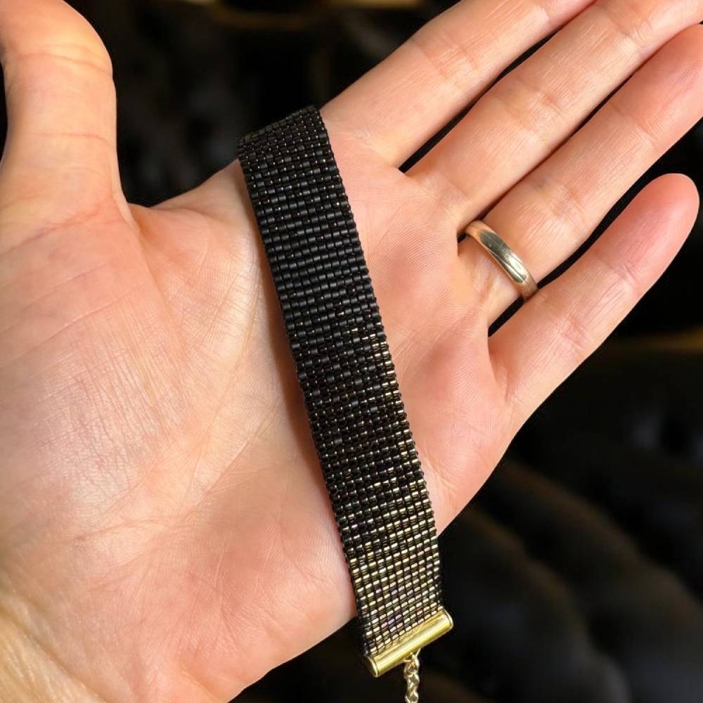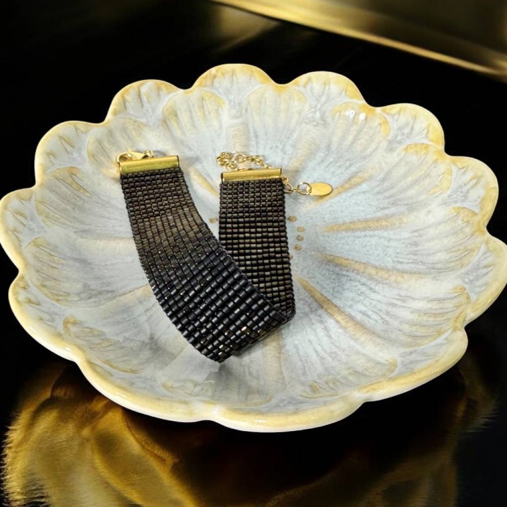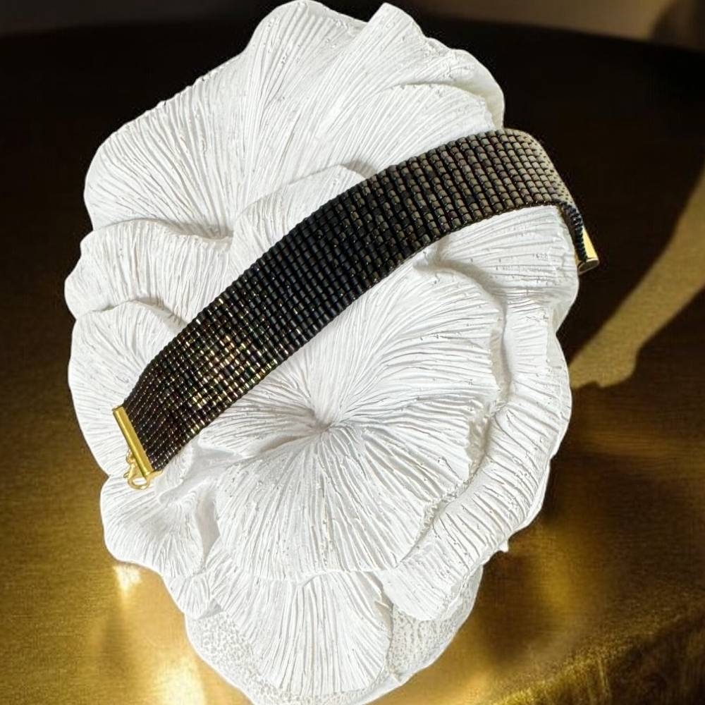 Alege rafinamentul si eleganta discreta cu aceasta bratara handmade din margele Miyuki, care imbina textura sofisticata a negrului mat cu stralucirea subtila a maroului metalizat. Designul sau modern si atent lucrat face din aceasta bratara un accesoriu statement, perfect pentru femeile care apreciaza stilul autentic.