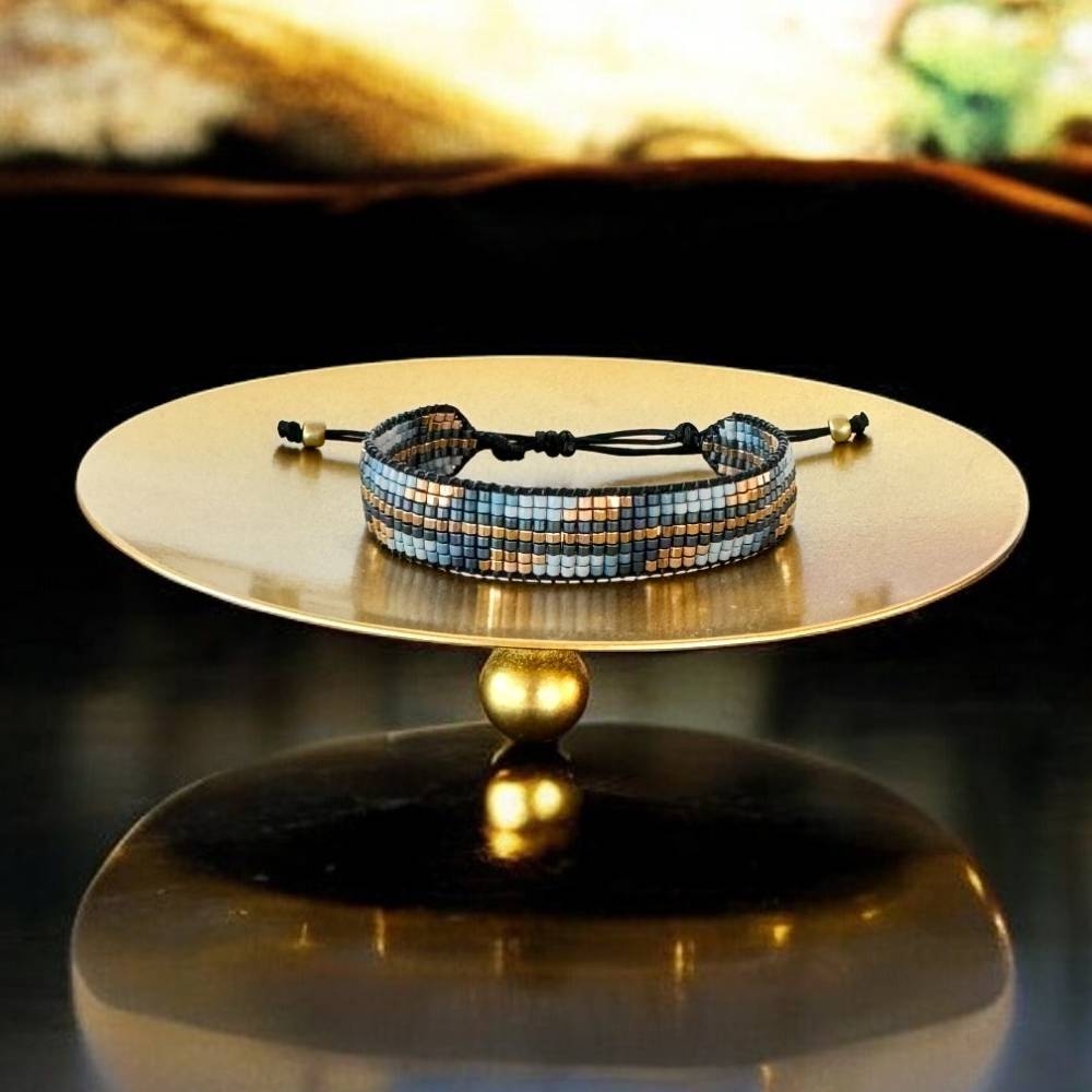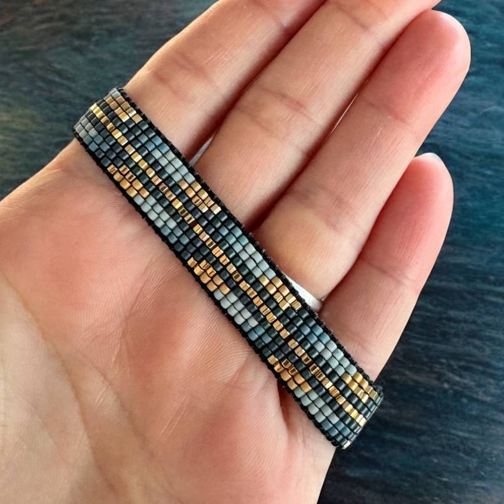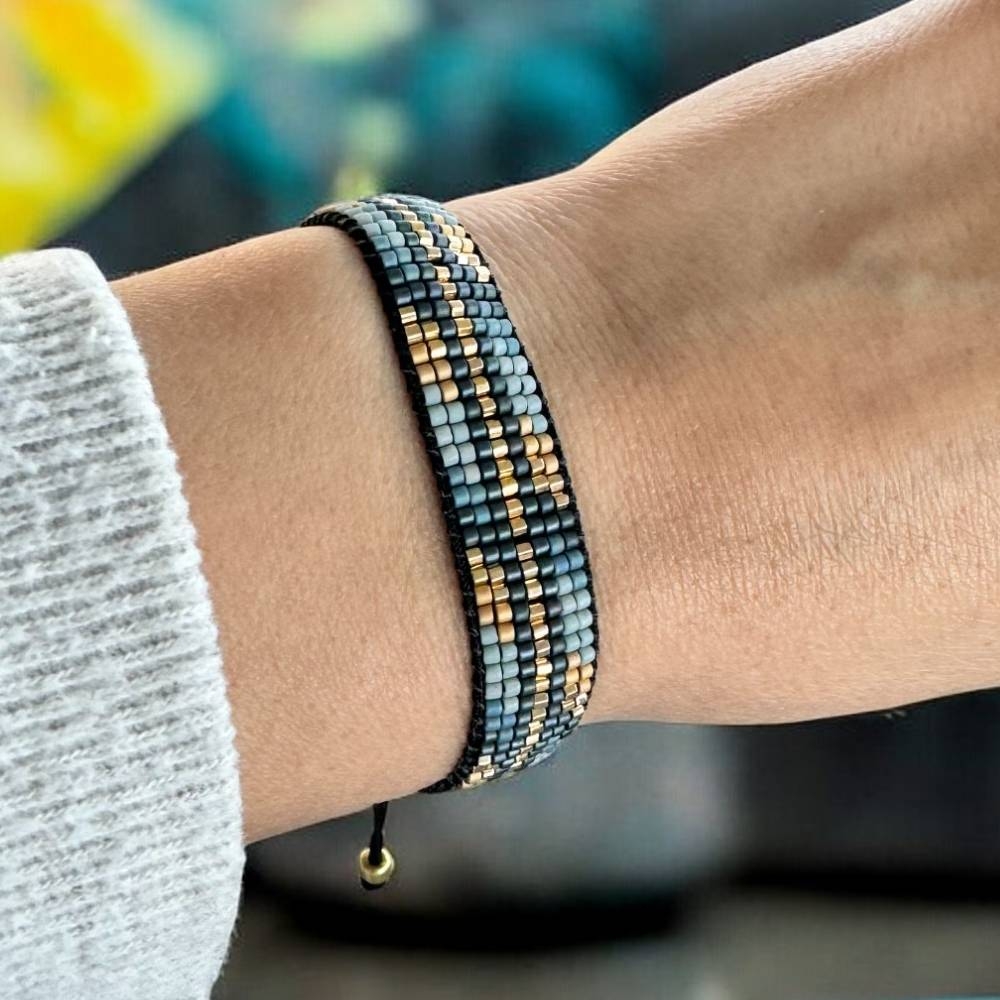 Fiecare margica de Miyuki este aleasa cu grija, iar impletitura delicata pe snur asigura un confort deosebit, fara a compromite designul elegant. Griul metalic se armonizeaza perfect cu auriul stralucitor, oferind un contrast subtil, dar indraznet, ideal pentru femeia moderna care apreciaza frumusetea subtila a detaliilor.
