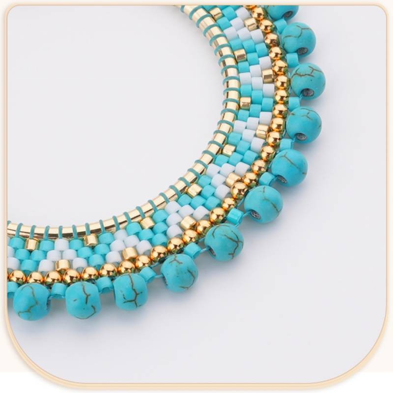 Redescopera magia elegantei boeme cu cerceii nostri rotunzi turcoaz lucrati manual. Imbratiseaza-ti ratacitorul interior si poarta o piesa de arta care reflecta individualitatea ta, totul in timp ce te bucuri de energia linistitoare a turcoazului. Adauga acesti cercei in colectia ta si lasa-ti stilul sa straluceasca cu fler boem.