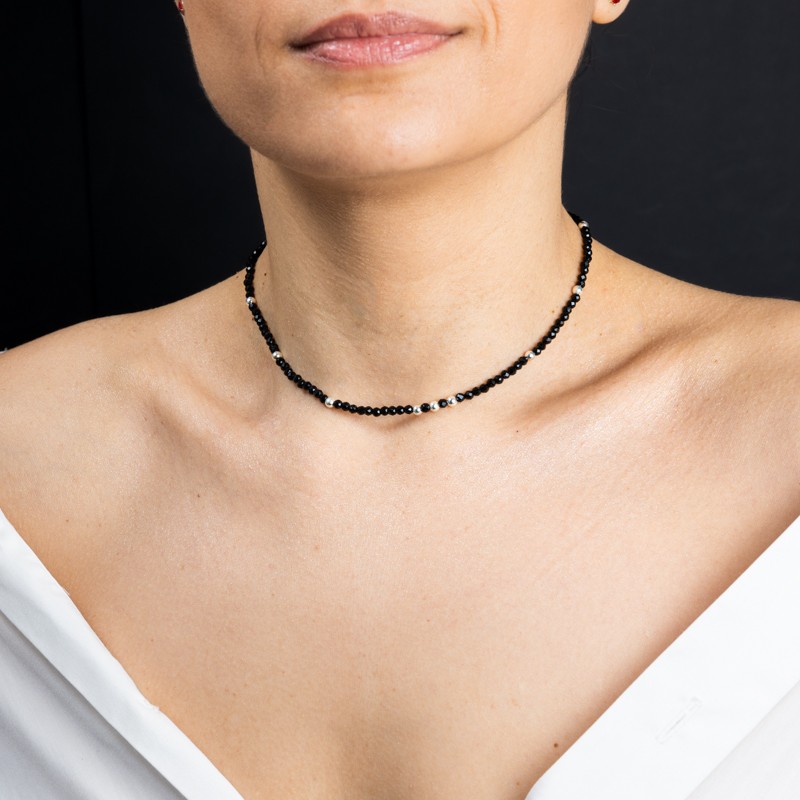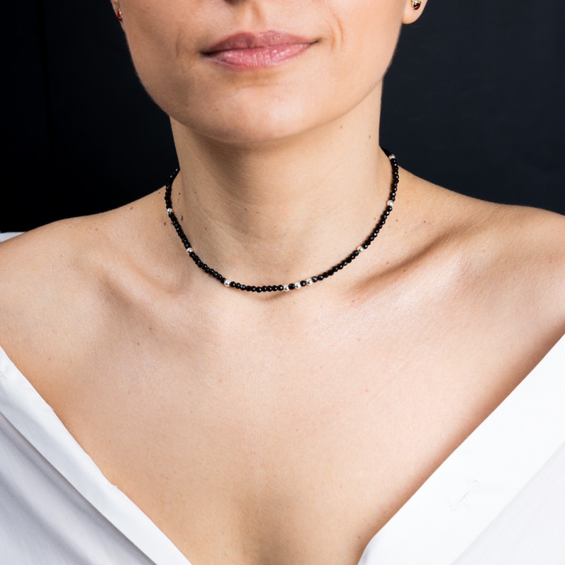 Acest frumos colier din cristale de Spinel negru este modalitatea perfecta de a-ti exprima stilul si de a-ti arata unicitatea. Nuanta sa neagra captivanta straluceste cu un luciu misterios, facandu-l accesoriul perfect pentru orice tinuta.