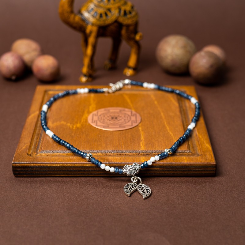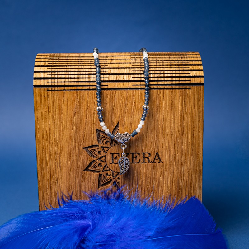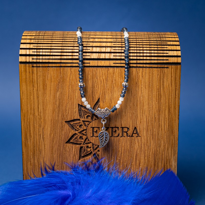 Lasa-te sedusa de colierul Ravindra din cristale naturale de safir si piatra lunii. Safirul face din aceasta bijuterie un accesoriu de un rafinament aparte pe care orice femeie si-ar dori sa-l pastreze in cutia de bijuterii si sa-l etaleze la ocazii speciale.