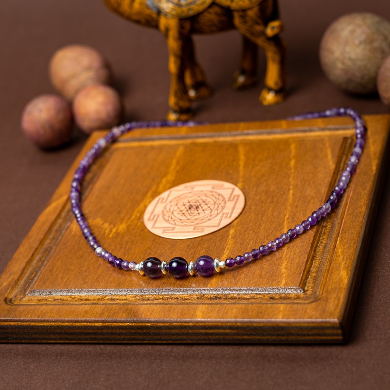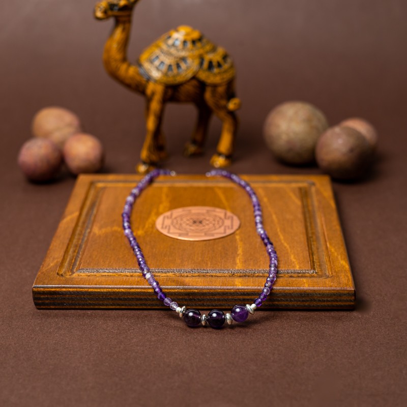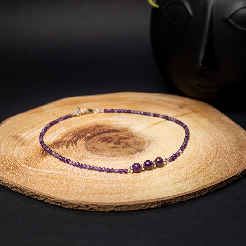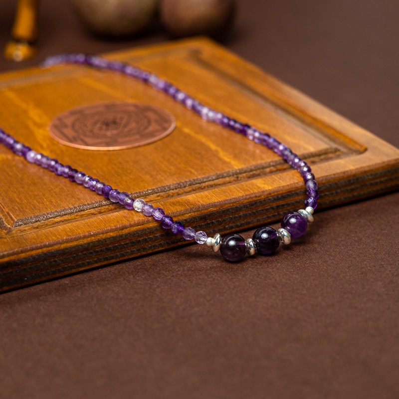 Pietrele de ametist stralucesc ca stelele pe cerul noptii, adaugand o sclipire de emotie in inima celui care le priveste. Acest colier este modalitatea perfecta de a-ti arata simtul unic al stilului estetic. Indiferent daca te imbraci pentru o ocazie speciala sau doar vrei sa iesi cu prietenii, acest colierul te va face sa te simti frumoasa si increzatoare.