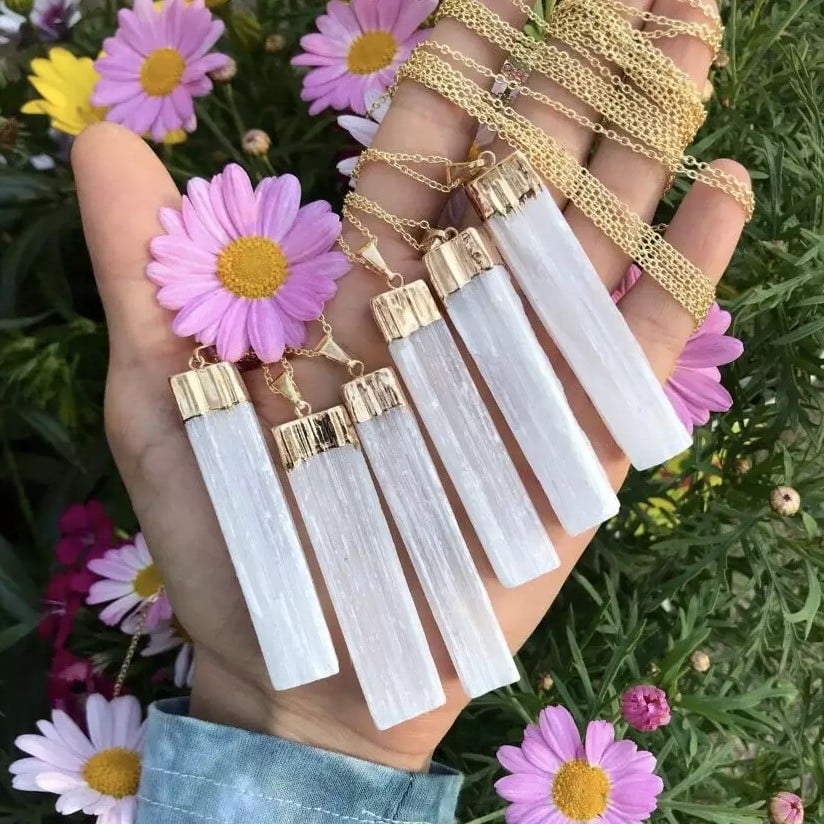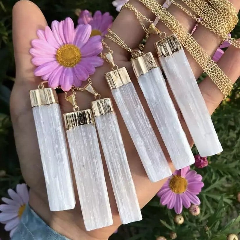 Alege sa porti pandantivul din cristal natural de selenit si conecteaza-te cu energia divina feminina!